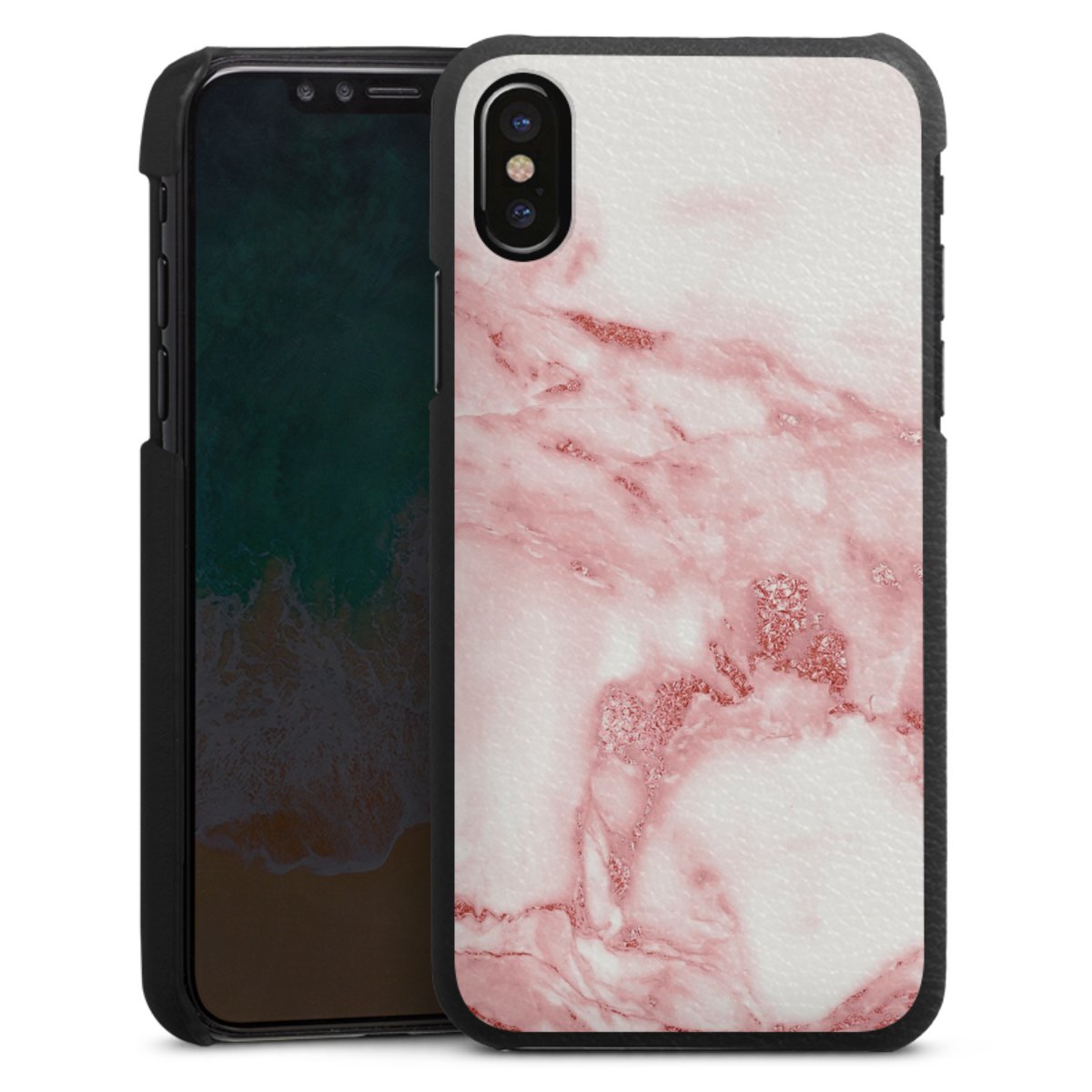 Die handgefertigte Handyhülle besteht außen aus hochwertigen Echtleder-Fasern, die Innenseite besteht aus stabilem Polycarbonat mit einer edlen Softtouch Beschichtung. Durch die Lederstruktur auf der Außenseite liegt das zeitlose Modell griffig in der Hand. Die Handyhülle ist in den Farben Schwarz, Weiß und Braun erhältlich.