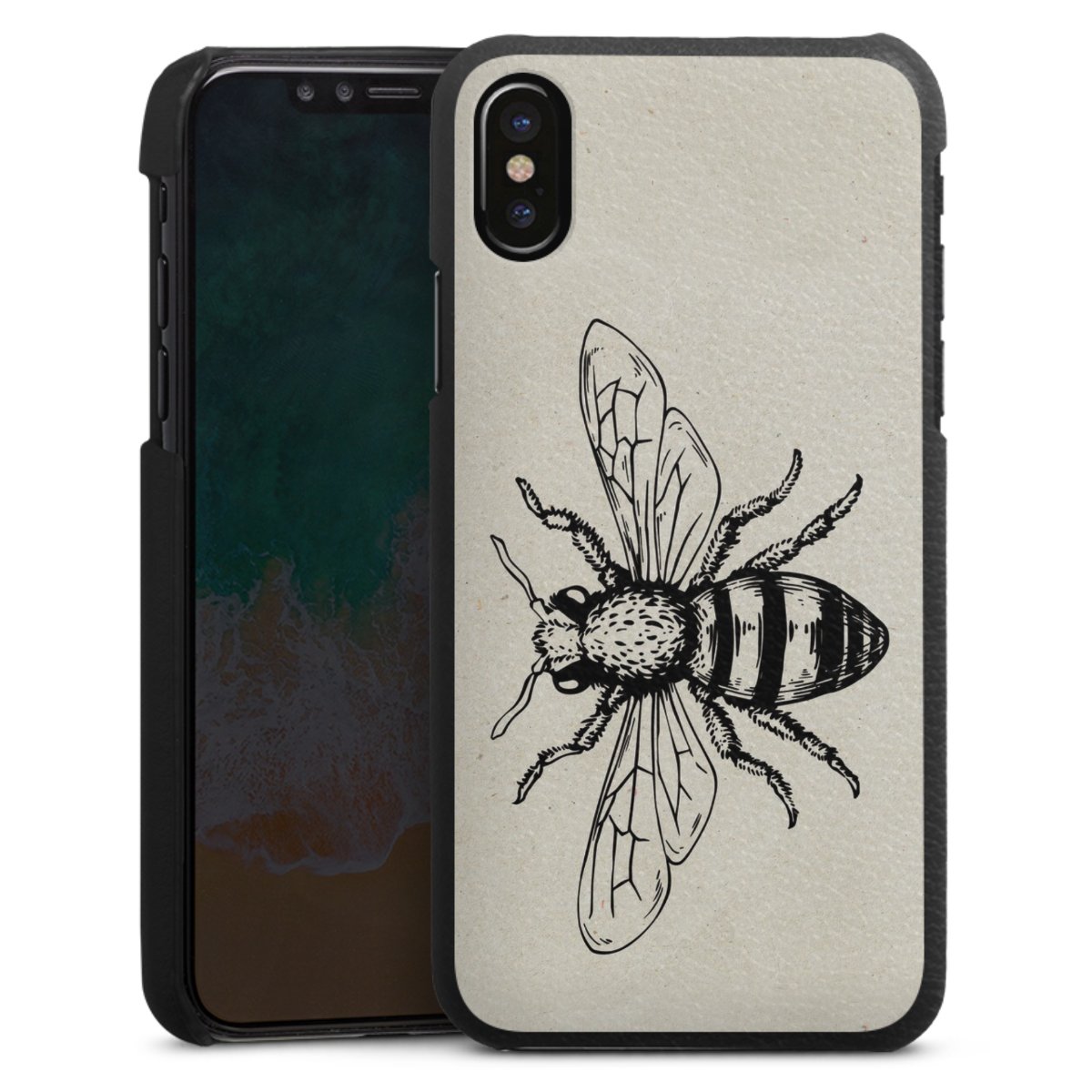 Die handgefertigte Handyhülle besteht außen aus hochwertigen Echtleder-Fasern, die Innenseite besteht aus stabilem Polycarbonat mit einer edlen Softtouch Beschichtung. Durch die Lederstruktur auf der Außenseite liegt das zeitlose Modell griffig in der Hand. Die Handyhülle ist in den Farben Schwarz, Weiß und Braun erhältlich.