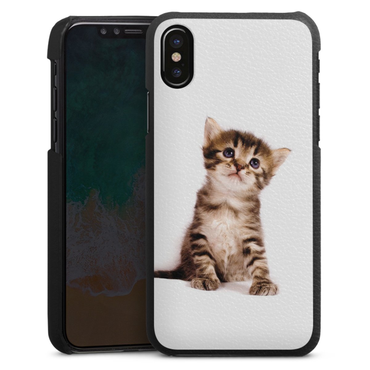 Die handgefertigte Handyhülle besteht außen aus hochwertigen Echtleder-Fasern, die Innenseite besteht aus stabilem Polycarbonat mit einer edlen Softtouch Beschichtung. Durch die Lederstruktur auf der Außenseite liegt das zeitlose Modell griffig in der Hand. Die Handyhülle ist in den Farben Schwarz, Weiß und Braun erhältlich.