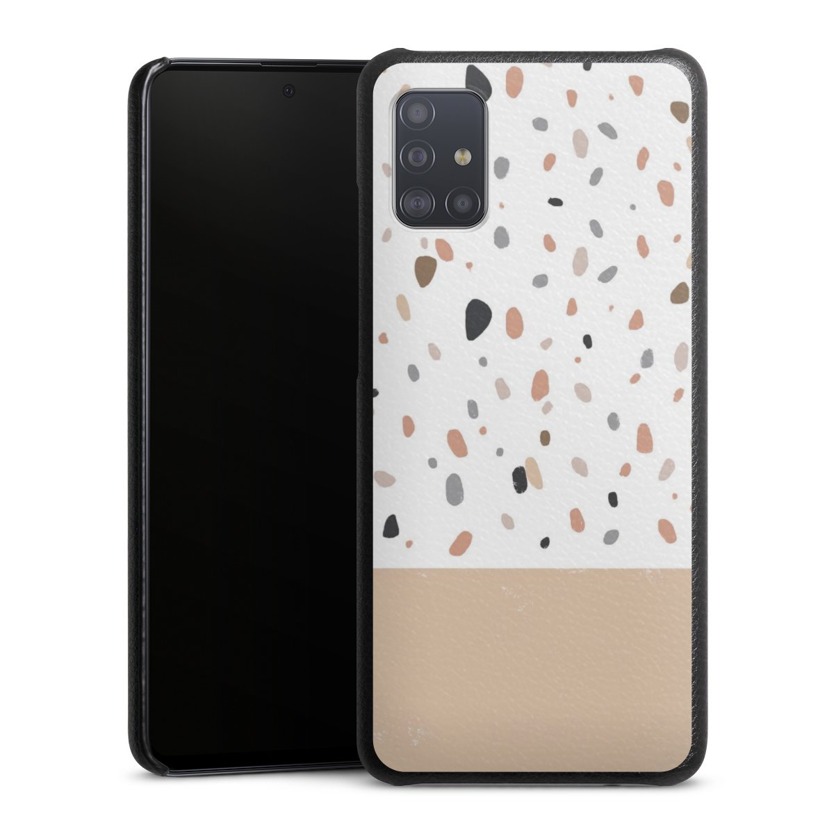 Die handgefertigte Handyhülle besteht außen aus hochwertigen Echtleder-Fasern, die Innenseite besteht aus stabilem Polycarbonat mit einer edlen Softtouch Beschichtung. Durch die Lederstruktur auf der Außenseite liegt das zeitlose Modell griffig in der Hand. Die Handyhülle ist in den Farben Schwarz, Weiß und Braun erhältlich.