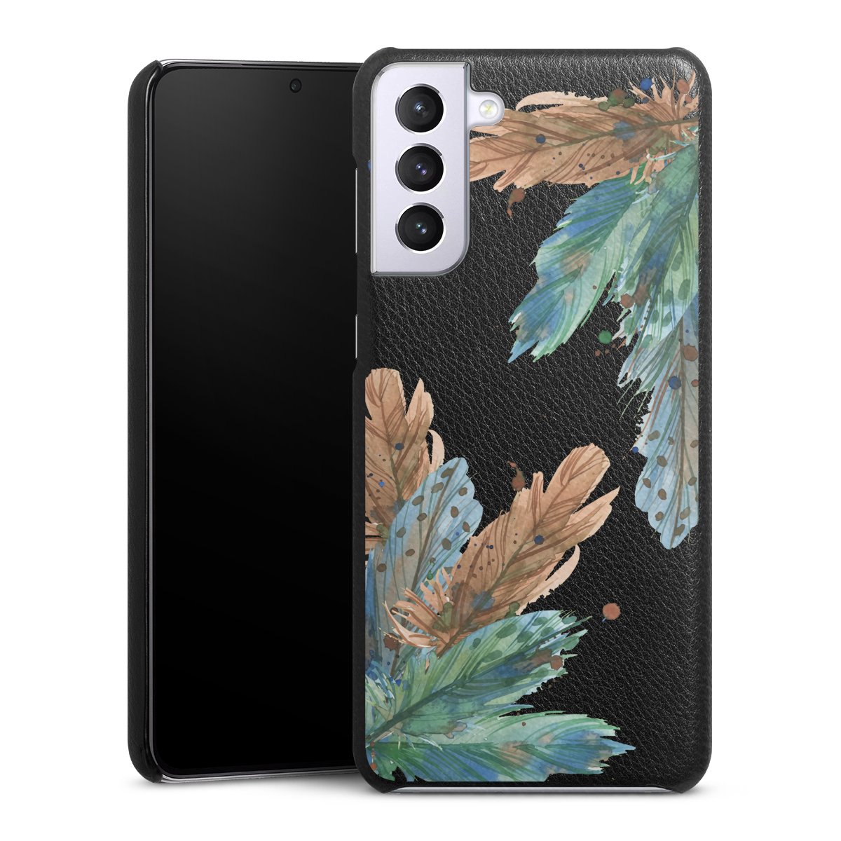 Die handgefertigte Handyhülle besteht außen aus hochwertigen Echtleder-Fasern, die Innenseite besteht aus stabilem Polycarbonat mit einer edlen Softtouch Beschichtung. Durch die Lederstruktur auf der Außenseite liegt das zeitlose Modell griffig in der Hand. Die Handyhülle ist in den Farben Schwarz, Weiß und Braun erhältlich.