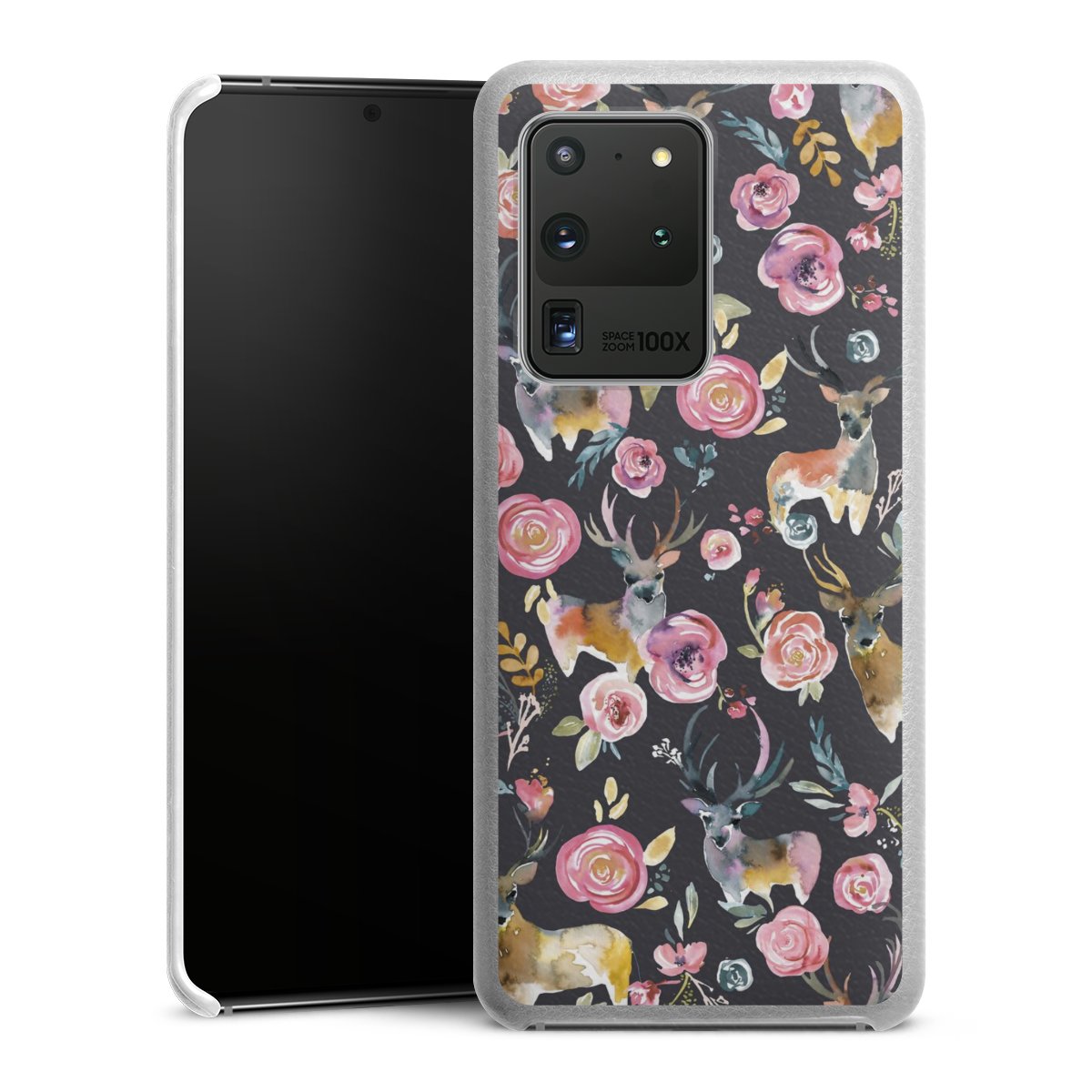 Hirsche und Blumen Anthrazit