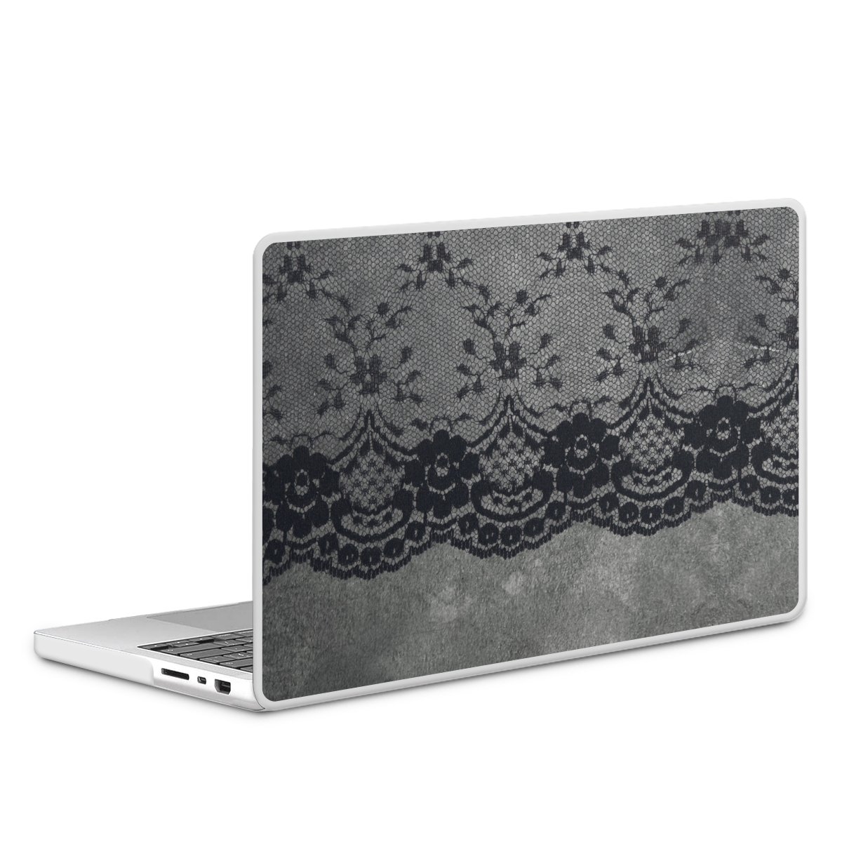 Schwarzes Spitzenmuster auf grauem Hintergrund
