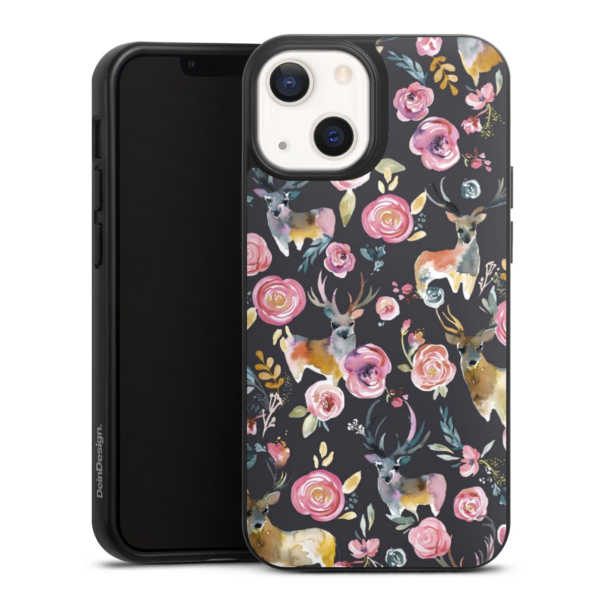 Hirsche und Blumen Anthrazit