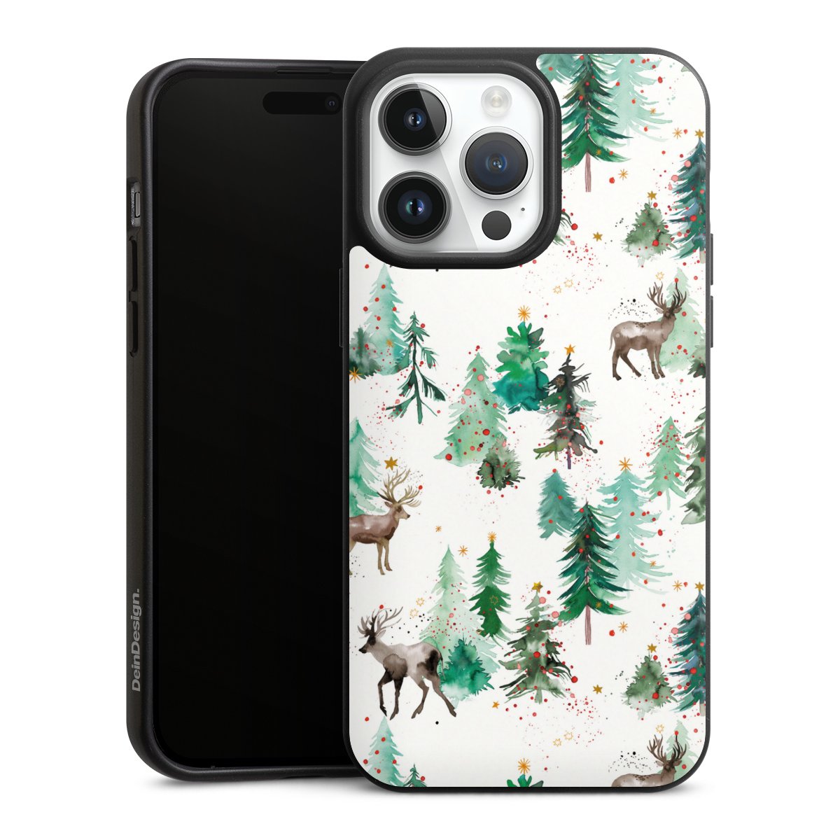 Hirsche und Winterweihnachtsbäume