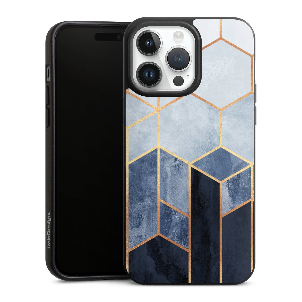 Blauer Farbverlauf Sechsecke Golddruck