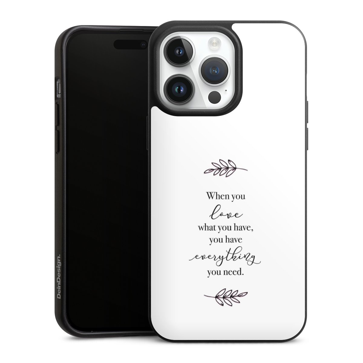 Entscheide Dich für einen Spruch, der zu 100% aussagt wofür Du einstehst. Zusätzlich kannst Du zu Deinem ausgewählten Spruch ein passendes Motiv kombinieren, sodass Dein Smartphone optisch was zu bieten hat. Doch nicht nur für das Aussehen sorgen wir, sondern auch zuverlässigen Schutz vor unschönen Alltagsgebrauchsspuren garantieren wir Dir. DeinDesign steht für innovative Drucktechnologie und hochwertige Materialien.