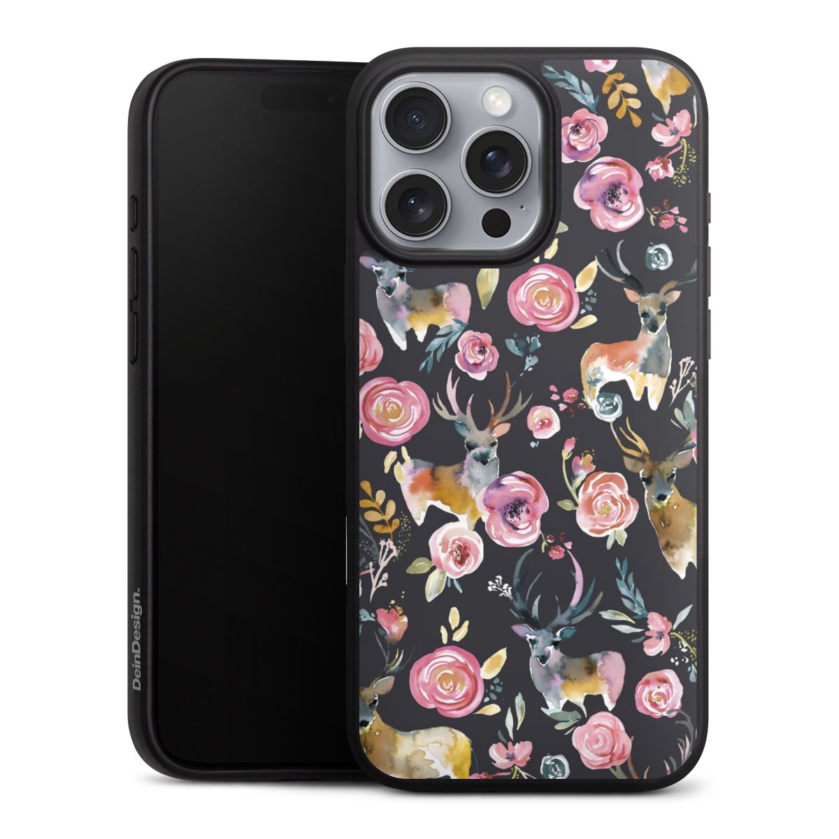 Hirsche und Blumen Anthrazit
