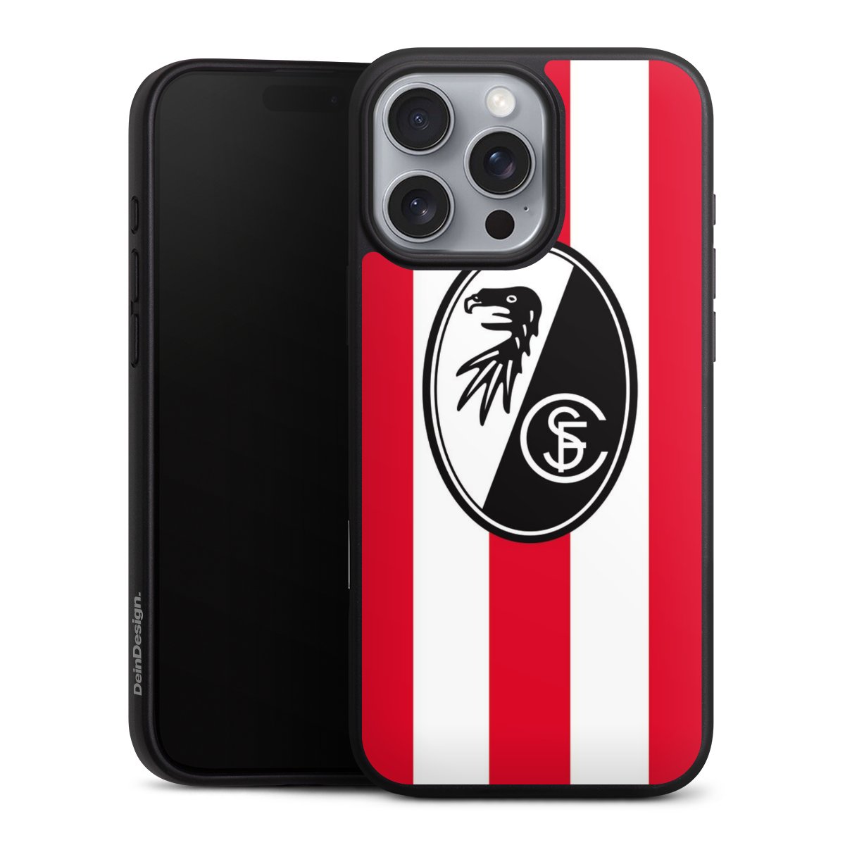Bei DeinDesign kannst Du Dir eine individuelle SC-Freiburg-Handyhülle aussuchen, auf der das stilvolle schwarz-weiße Logo mit dem Greifenkopf zu sehen ist. Durch eine solche Hülle erhält Dein Smartphone ein unverkennbar individuelles Design. Der SC-Freiburg-Shop bietet lizensierte Fanartikel für alle Fans der Breisgau-Brasilianer.