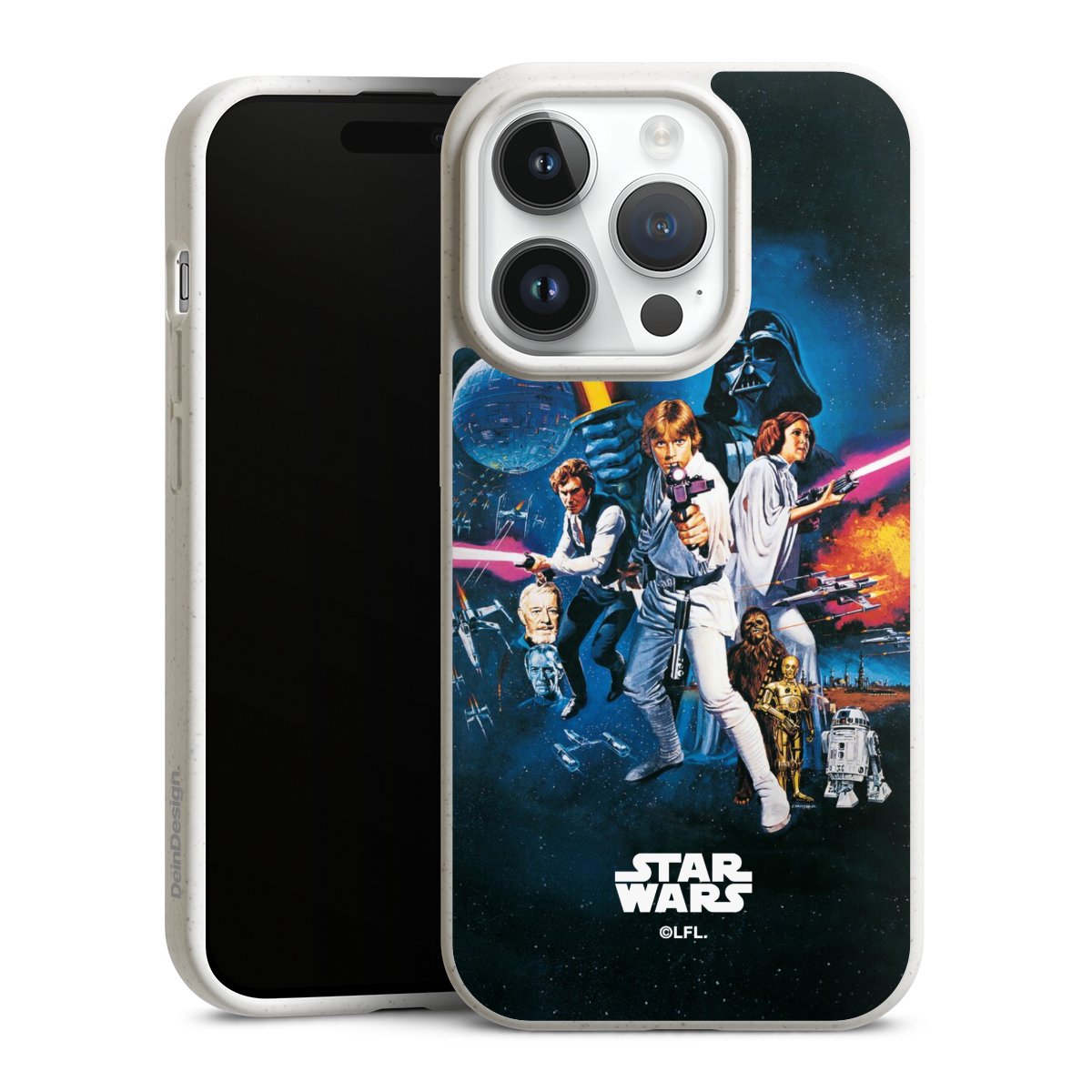 Darth Vader, C3PO, R2D2 und Meister Yoda findest Du in unserem Star Wars Shop auf DeinDesign. Natürlich gibt es auch Star Wars Handyhüllen mit den legendären Charakteren Luke Skywalker, Prinzessin Leia und Han Solo, den Helden der ersten Saga. Wer jedoch die Hauptfiguren der neuen Star Wars Filme ins Herz geschlossen hat, kann auch Finn und Rey mit ihren mächtigen Waffen auf der Rückseite seines Smartphones haben. Die vielseitigen Schutzhüllen in verschiedenen Ausführungen sind das perfekte Geschenk für alle Star Wars Fans, die ihrem Smartphone eine individuelle Note verleihen wollen.