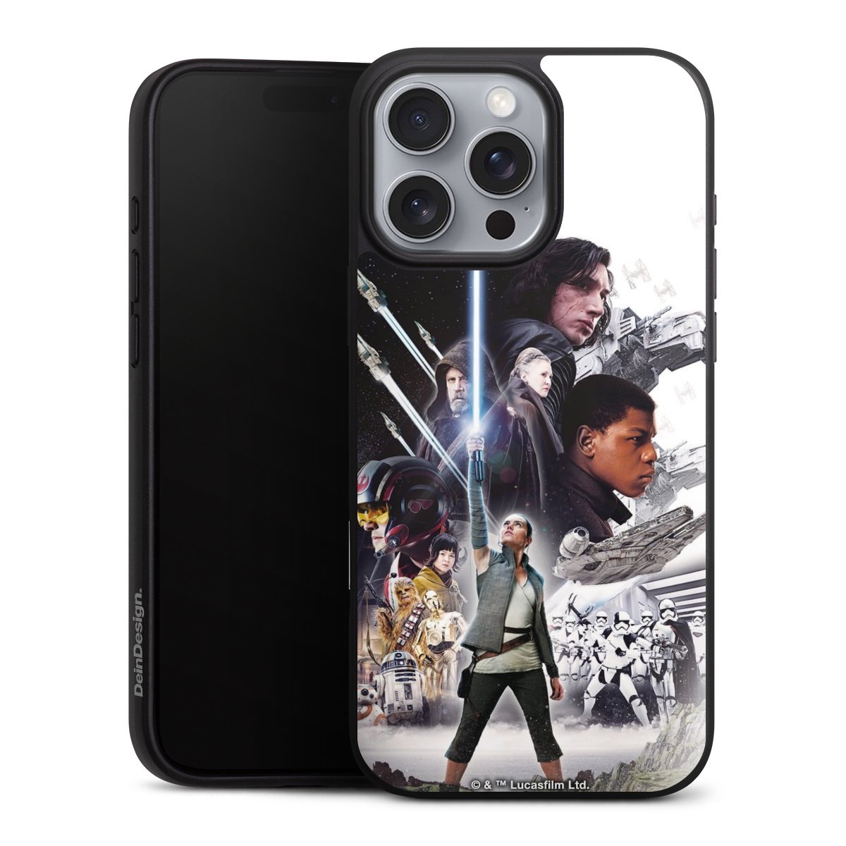 Darth Vader, C3PO, R2D2 und Meister Yoda findest Du in unserem Star Wars Shop auf DeinDesign. Natürlich gibt es auch Star Wars Handyhüllen mit den legendären Charakteren Luke Skywalker, Prinzessin Leia und Han Solo, den Helden der ersten Saga. Wer jedoch die Hauptfiguren der neuen Star Wars Filme ins Herz geschlossen hat, kann auch Finn und Rey mit ihren mächtigen Waffen auf der Rückseite seines Smartphones haben. Die vielseitigen Schutzhüllen in verschiedenen Ausführungen sind das perfekte Geschenk für alle Star Wars Fans, die ihrem Smartphone eine individuelle Note verleihen wollen.