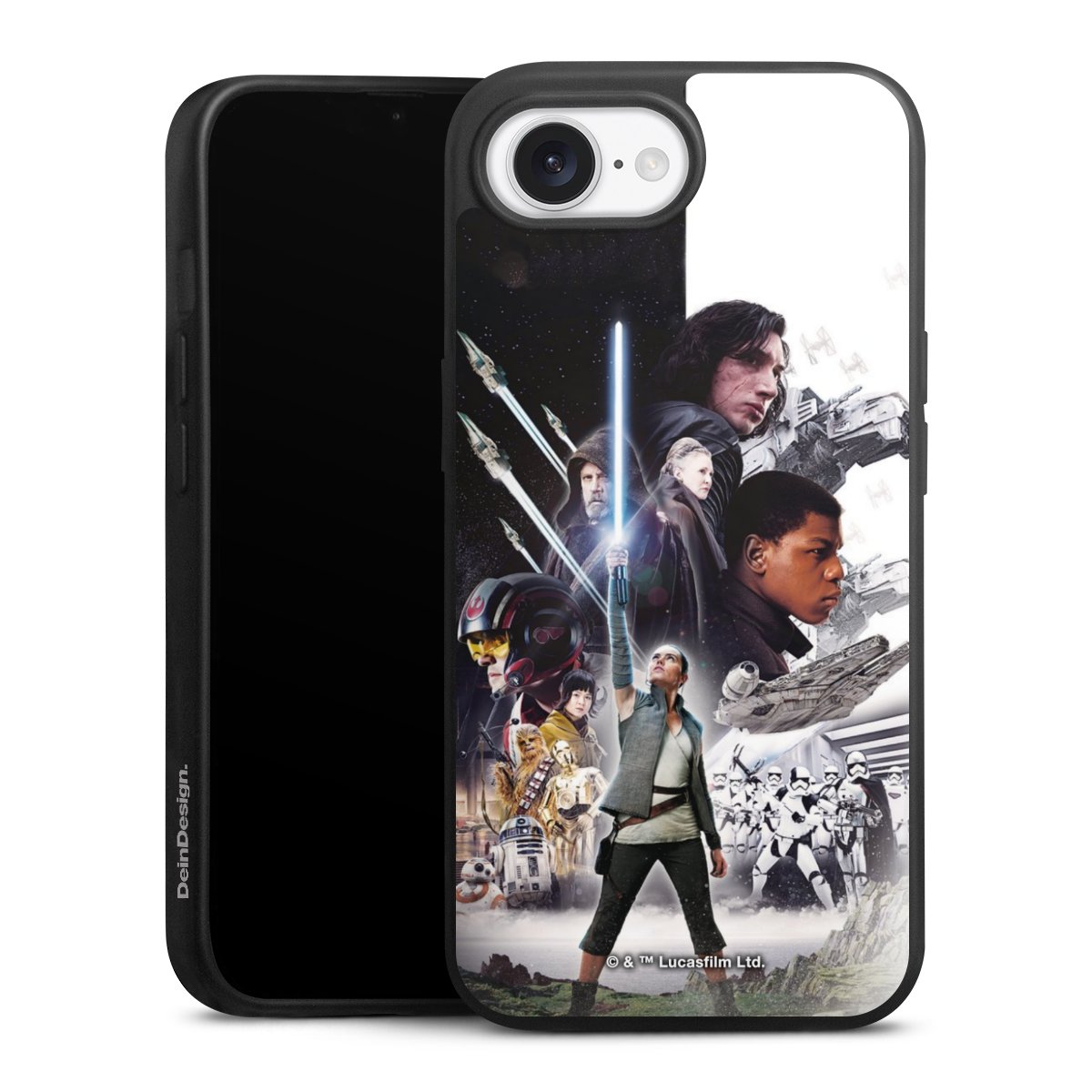 Darth Vader, C3PO, R2D2 und Meister Yoda findest Du in unserem Star Wars Shop auf DeinDesign. Natürlich gibt es auch Star Wars Handyhüllen mit den legendären Charakteren Luke Skywalker, Prinzessin Leia und Han Solo, den Helden der ersten Saga. Wer jedoch die Hauptfiguren der neuen Star Wars Filme ins Herz geschlossen hat, kann auch Finn und Rey mit ihren mächtigen Waffen auf der Rückseite seines Smartphones haben. Die vielseitigen Schutzhüllen in verschiedenen Ausführungen sind das perfekte Geschenk für alle Star Wars Fans, die ihrem Smartphone eine individuelle Note verleihen wollen.