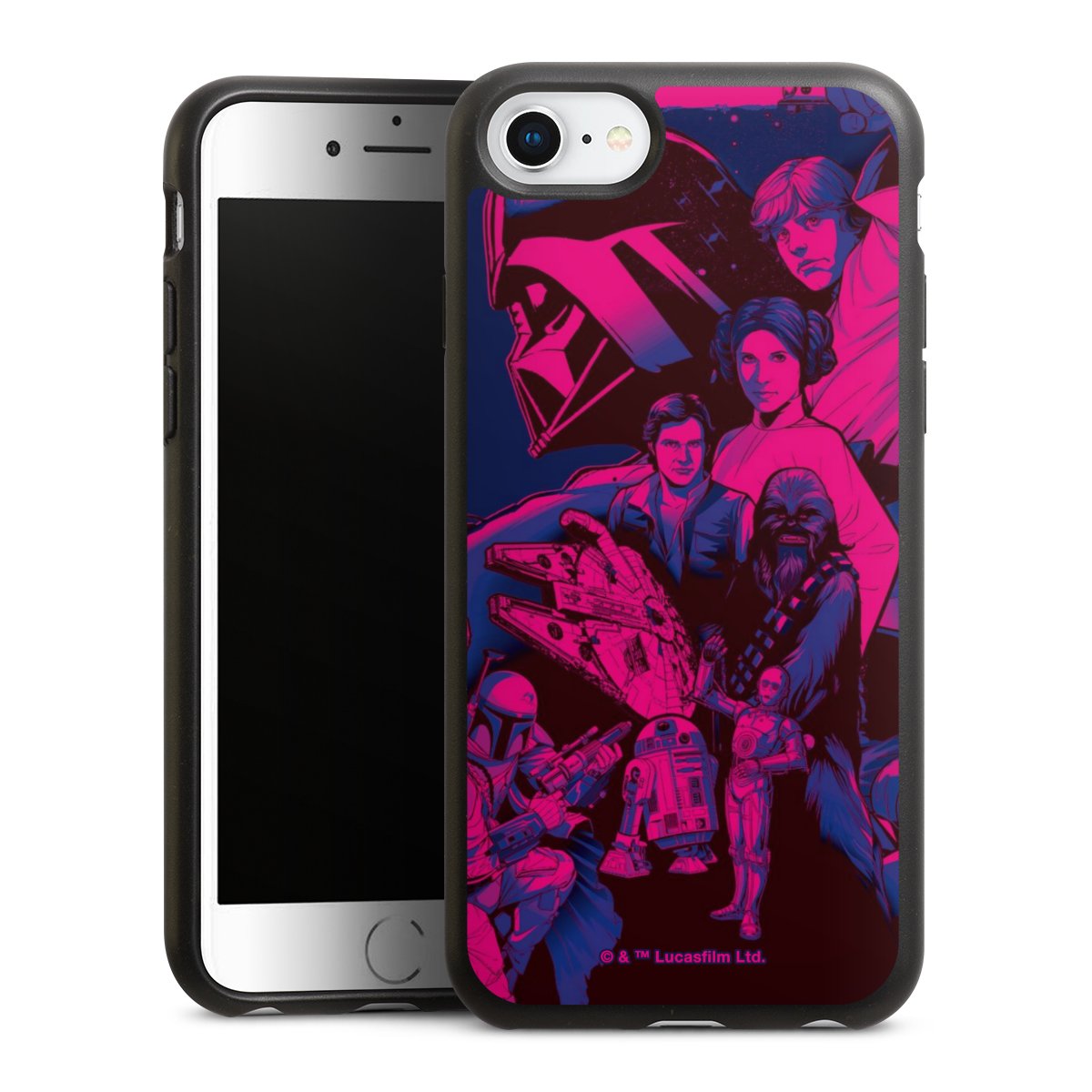 Darth Vader, C3PO, R2D2 und Meister Yoda findest Du in unserem Star Wars Shop auf DeinDesign. Natürlich gibt es auch Star Wars Handyhüllen mit den legendären Charakteren Luke Skywalker, Prinzessin Leia und Han Solo, den Helden der ersten Saga. Wer jedoch die Hauptfiguren der neuen Star Wars Filme ins Herz geschlossen hat, kann auch Finn und Rey mit ihren mächtigen Waffen auf der Rückseite seines Smartphones haben. Die vielseitigen Schutzhüllen in verschiedenen Ausführungen sind das perfekte Geschenk für alle Star Wars Fans, die ihrem Smartphone eine individuelle Note verleihen wollen.