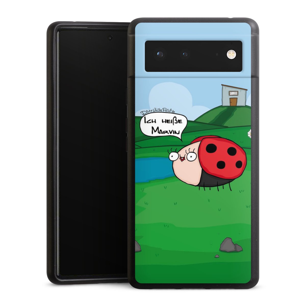 Ob Du Dich nun für Marvin, Günther das Schaf oder doch lieber für die dauerbekiffte Cannabiene entscheidest. Mit einem Motiv von DirtyWhitePaint wird Dein Smartphonen selbst zum Comic.