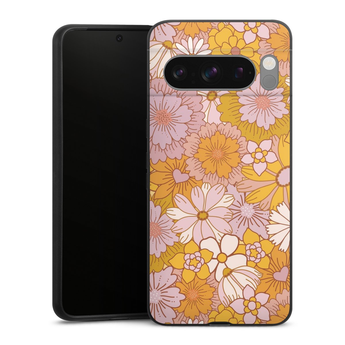 Retro Blumentapete Gelb
