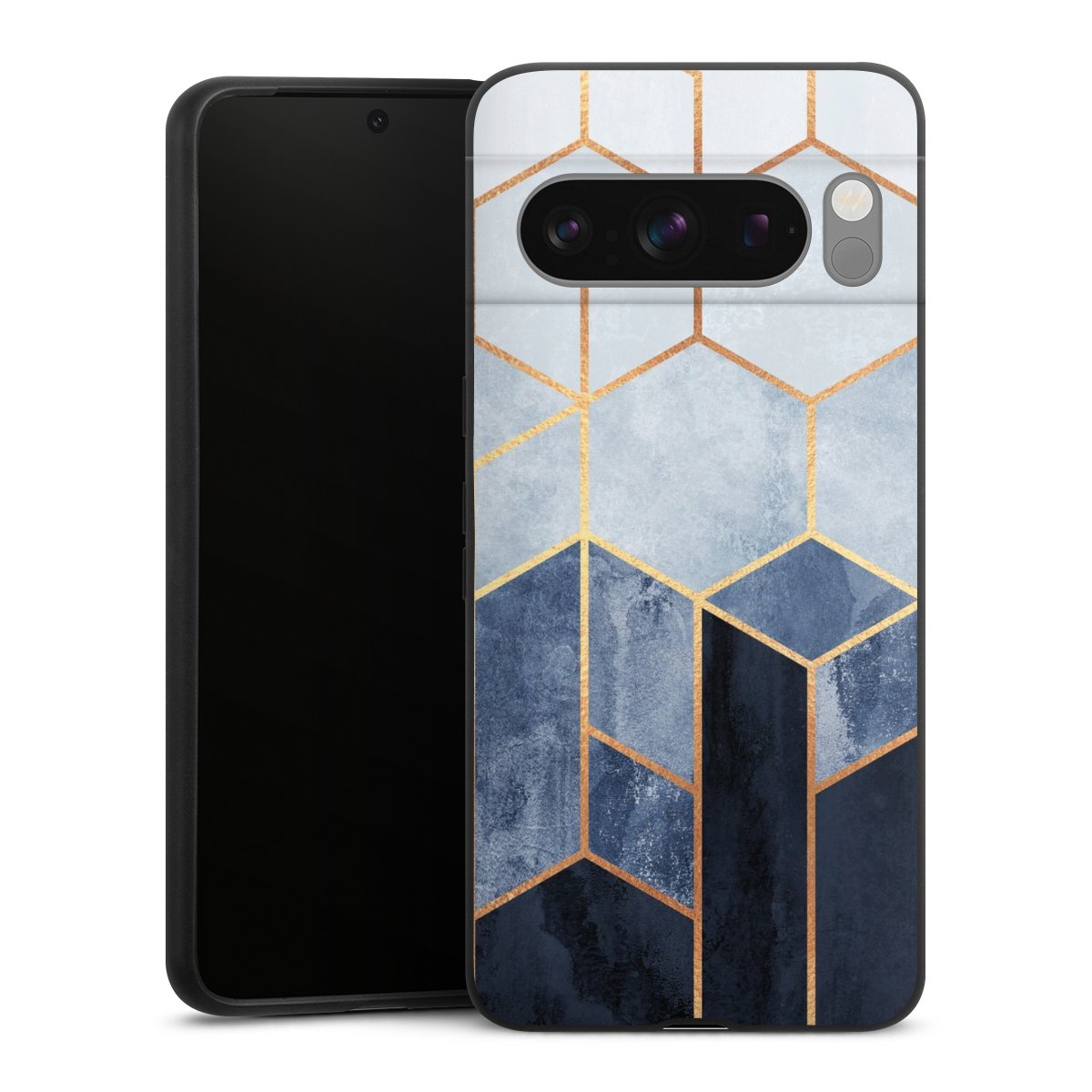 Blauer Farbverlauf Sechsecke Golddruck