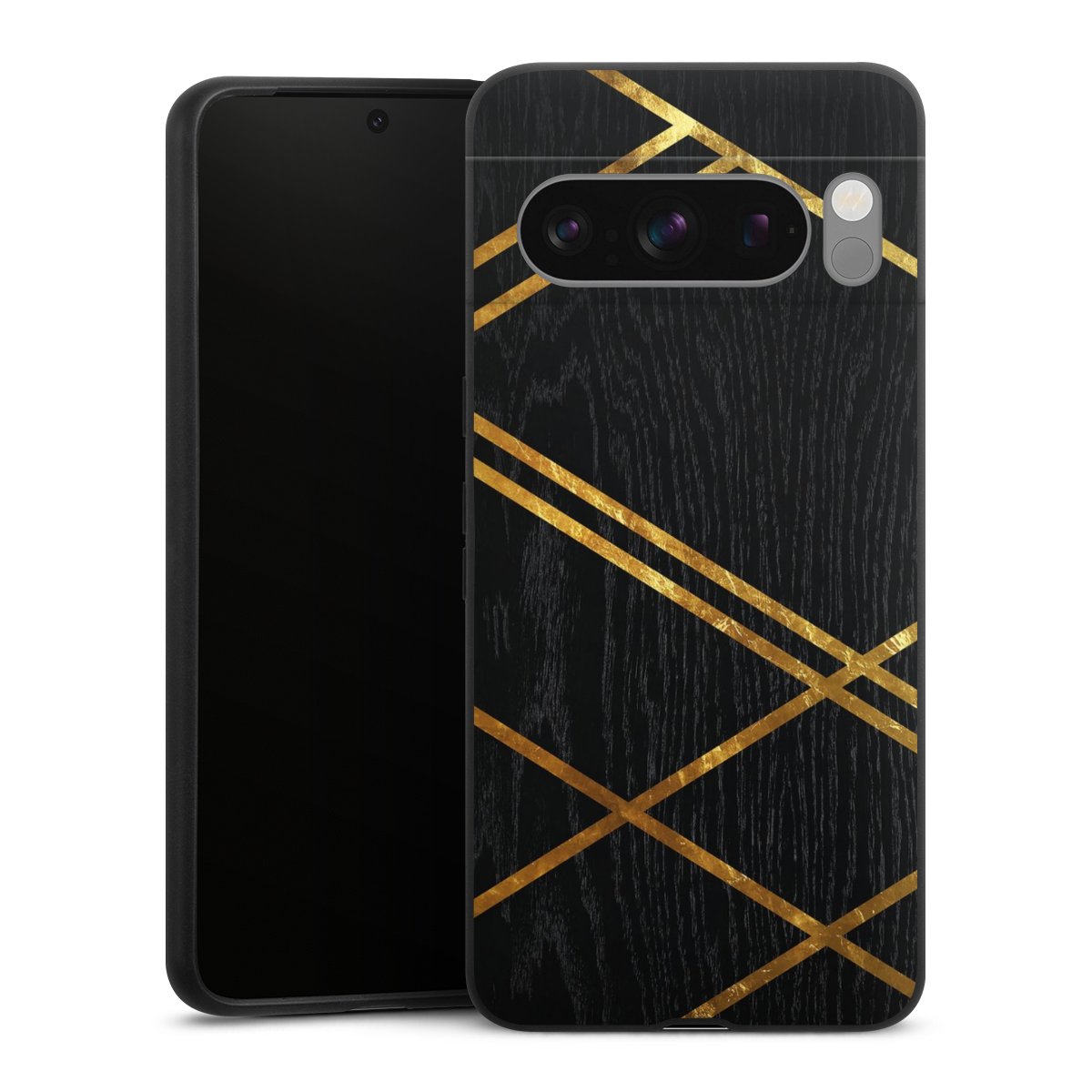 Schwarzes geometrisches Muster Goldene Streifen