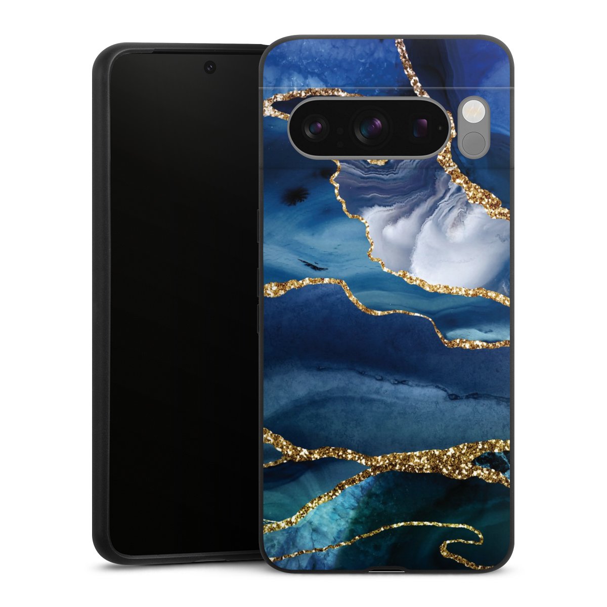 Blauer Marmor Gold Glitzer Look