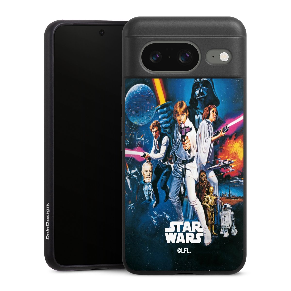 Darth Vader, C3PO, R2D2 und Meister Yoda findest Du in unserem Star Wars Shop auf DeinDesign. Natürlich gibt es auch Star Wars Handyhüllen mit den legendären Charakteren Luke Skywalker, Prinzessin Leia und Han Solo, den Helden der ersten Saga. Wer jedoch die Hauptfiguren der neuen Star Wars Filme ins Herz geschlossen hat, kann auch Finn und Rey mit ihren mächtigen Waffen auf der Rückseite seines Smartphones haben. Die vielseitigen Schutzhüllen in verschiedenen Ausführungen sind das perfekte Geschenk für alle Star Wars Fans, die ihrem Smartphone eine individuelle Note verleihen wollen.