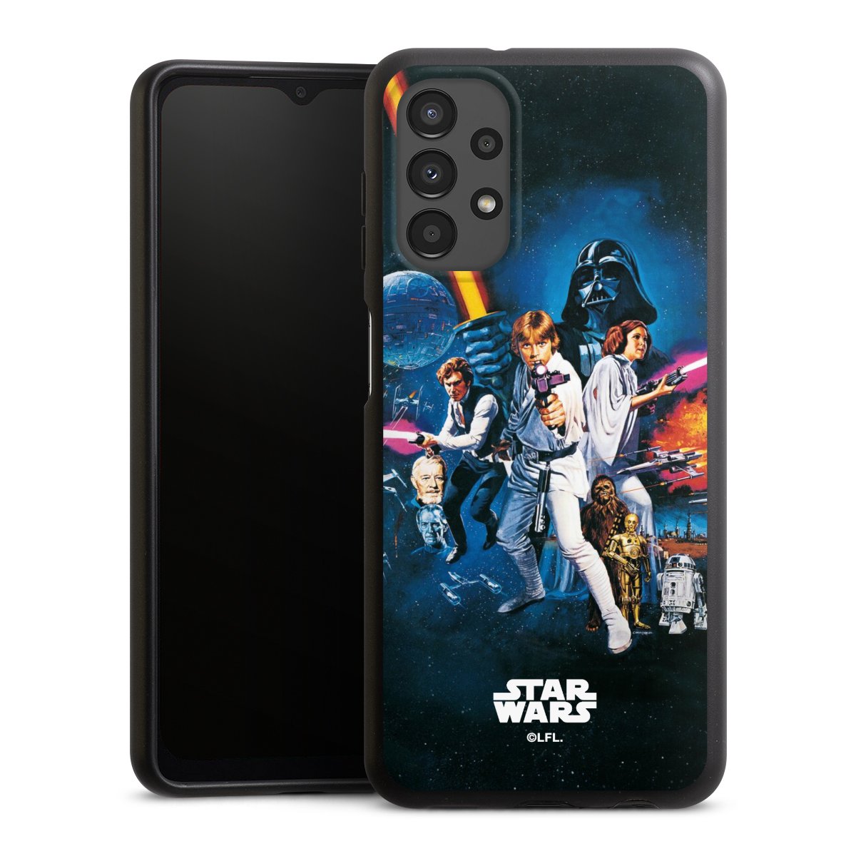Darth Vader, C3PO, R2D2 und Meister Yoda findest Du in unserem Star Wars Shop auf DeinDesign. Natürlich gibt es auch Star Wars Handyhüllen mit den legendären Charakteren Luke Skywalker, Prinzessin Leia und Han Solo, den Helden der ersten Saga. Wer jedoch die Hauptfiguren der neuen Star Wars Filme ins Herz geschlossen hat, kann auch Finn und Rey mit ihren mächtigen Waffen auf der Rückseite seines Smartphones haben. Die vielseitigen Schutzhüllen in verschiedenen Ausführungen sind das perfekte Geschenk für alle Star Wars Fans, die ihrem Smartphone eine individuelle Note verleihen wollen.