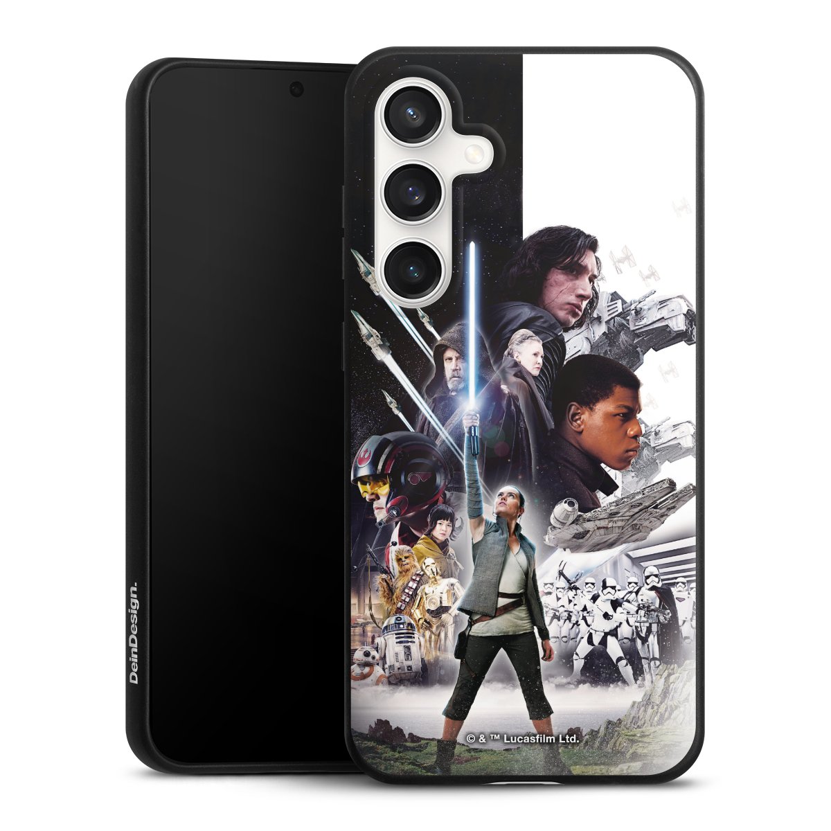 Darth Vader, C3PO, R2D2 und Meister Yoda findest Du in unserem Star Wars Shop auf DeinDesign. Natürlich gibt es auch Star Wars Handyhüllen mit den legendären Charakteren Luke Skywalker, Prinzessin Leia und Han Solo, den Helden der ersten Saga. Wer jedoch die Hauptfiguren der neuen Star Wars Filme ins Herz geschlossen hat, kann auch Finn und Rey mit ihren mächtigen Waffen auf der Rückseite seines Smartphones haben. Die vielseitigen Schutzhüllen in verschiedenen Ausführungen sind das perfekte Geschenk für alle Star Wars Fans, die ihrem Smartphone eine individuelle Note verleihen wollen.