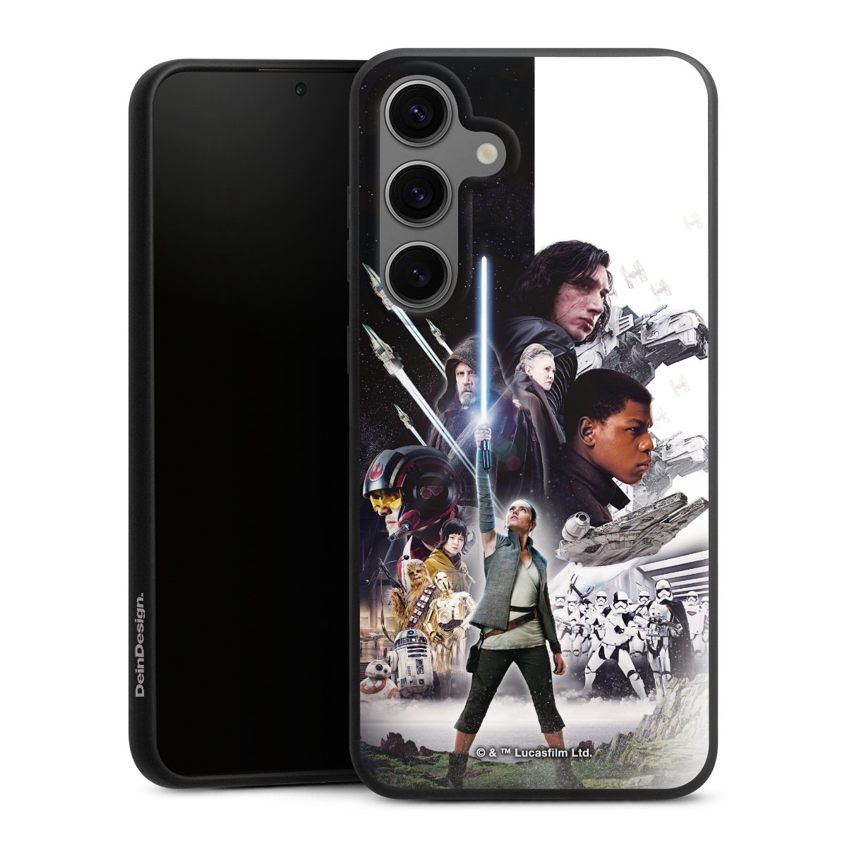 Darth Vader, C3PO, R2D2 und Meister Yoda findest Du in unserem Star Wars Shop auf DeinDesign. Natürlich gibt es auch Star Wars Handyhüllen mit den legendären Charakteren Luke Skywalker, Prinzessin Leia und Han Solo, den Helden der ersten Saga. Wer jedoch die Hauptfiguren der neuen Star Wars Filme ins Herz geschlossen hat, kann auch Finn und Rey mit ihren mächtigen Waffen auf der Rückseite seines Smartphones haben. Die vielseitigen Schutzhüllen in verschiedenen Ausführungen sind das perfekte Geschenk für alle Star Wars Fans, die ihrem Smartphone eine individuelle Note verleihen wollen.