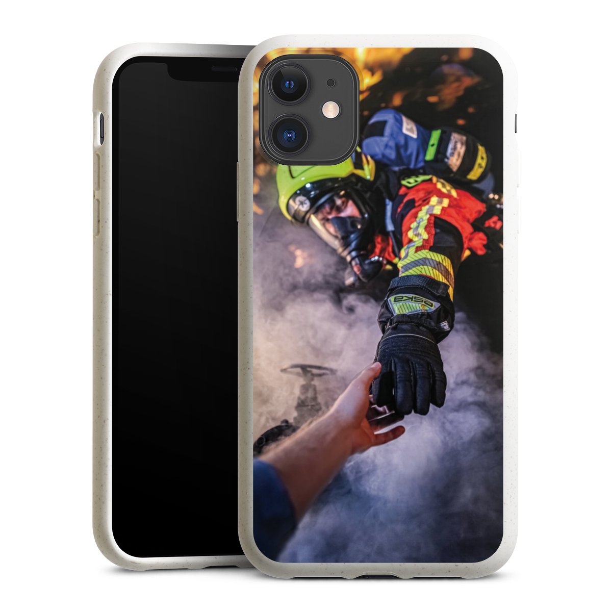 Feuerwehrmann greift nach der Hand