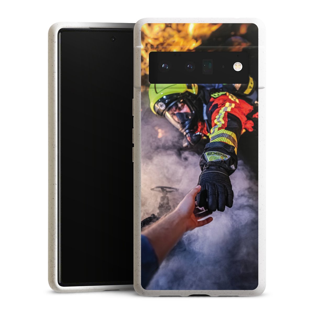 Feuerwehrmann greift nach der Hand
