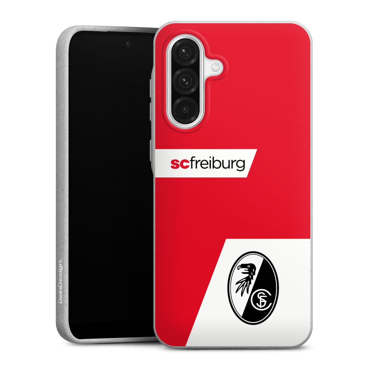 Bei DeinDesign kannst Du Dir eine individuelle SC-Freiburg-Handyhülle aussuchen, auf der das stilvolle schwarz-weiße Logo mit dem Greifenkopf zu sehen ist. Durch eine solche Hülle erhält Dein Smartphone ein unverkennbar individuelles Design. Der SC-Freiburg-Shop bietet lizensierte Fanartikel für alle Fans der Breisgau-Brasilianer.