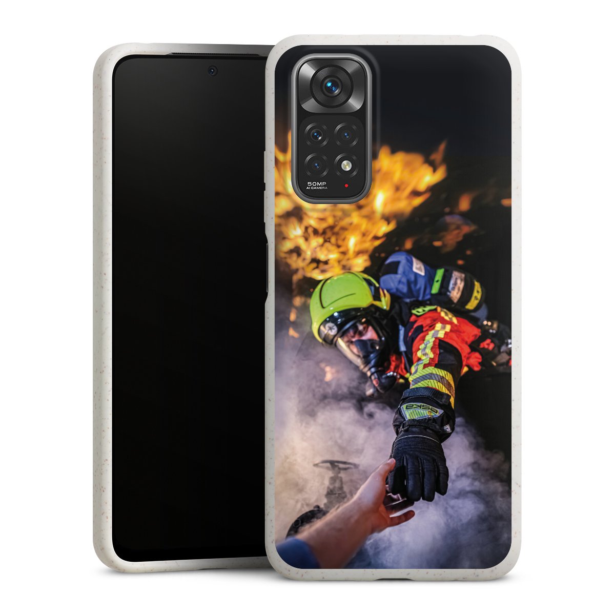 Feuerwehrmann greift nach der Hand