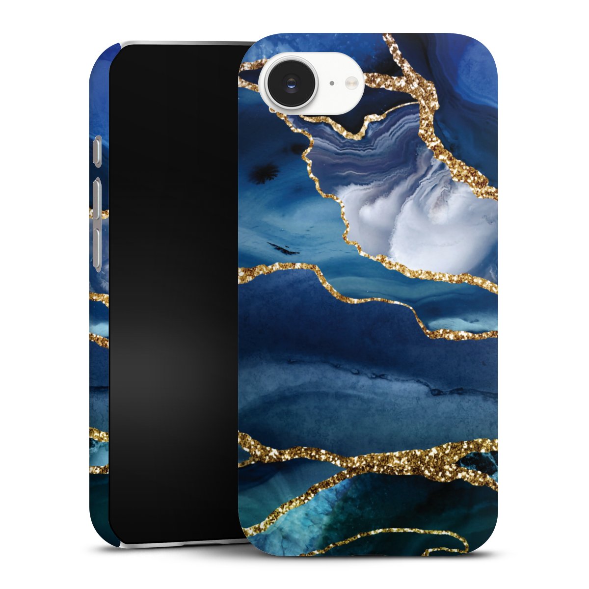 Blauer Marmor Gold Glitzer Look