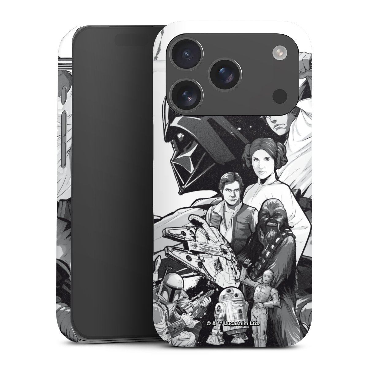 Darth Vader, C3PO, R2D2 und Meister Yoda findest Du in unserem Star Wars Shop auf DeinDesign. Natürlich gibt es auch Star Wars Handyhüllen mit den legendären Charakteren Luke Skywalker, Prinzessin Leia und Han Solo, den Helden der ersten Saga. Wer jedoch die Hauptfiguren der neuen Star Wars Filme ins Herz geschlossen hat, kann auch Finn und Rey mit ihren mächtigen Waffen auf der Rückseite seines Smartphones haben. Die vielseitigen Schutzhüllen in verschiedenen Ausführungen sind das perfekte Geschenk für alle Star Wars Fans, die ihrem Smartphone eine individuelle Note verleihen wollen.