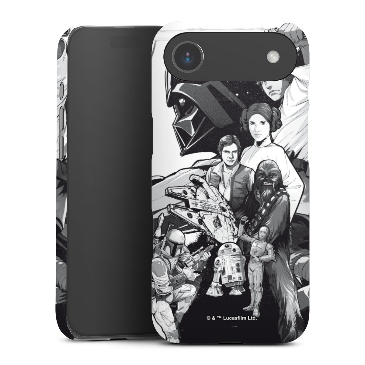 Darth Vader, C3PO, R2D2 und Meister Yoda findest Du in unserem Star Wars Shop auf DeinDesign. Natürlich gibt es auch Star Wars Handyhüllen mit den legendären Charakteren Luke Skywalker, Prinzessin Leia und Han Solo, den Helden der ersten Saga. Wer jedoch die Hauptfiguren der neuen Star Wars Filme ins Herz geschlossen hat, kann auch Finn und Rey mit ihren mächtigen Waffen auf der Rückseite seines Smartphones haben. Die vielseitigen Schutzhüllen in verschiedenen Ausführungen sind das perfekte Geschenk für alle Star Wars Fans, die ihrem Smartphone eine individuelle Note verleihen wollen.