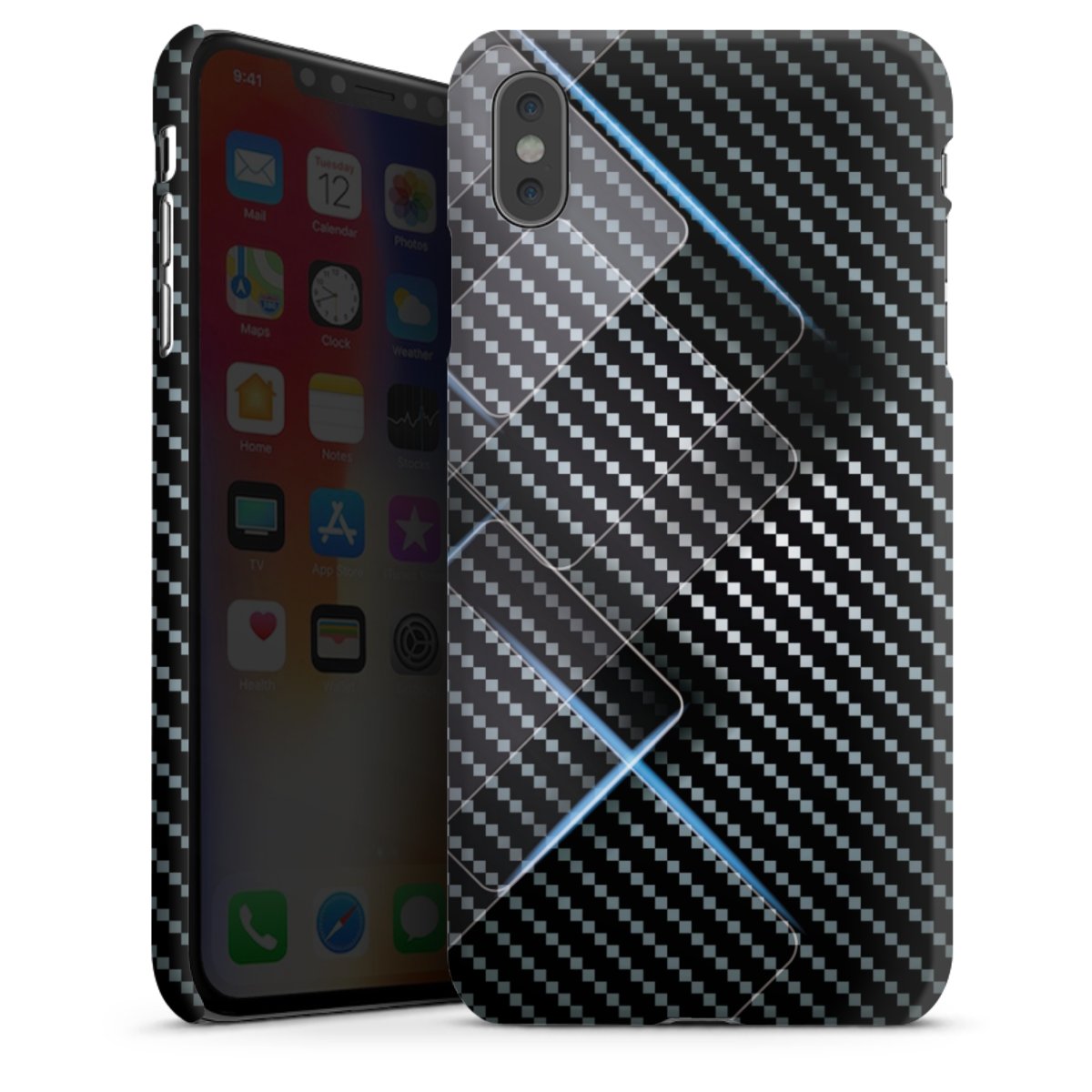 Blaue Linien auf Karbon