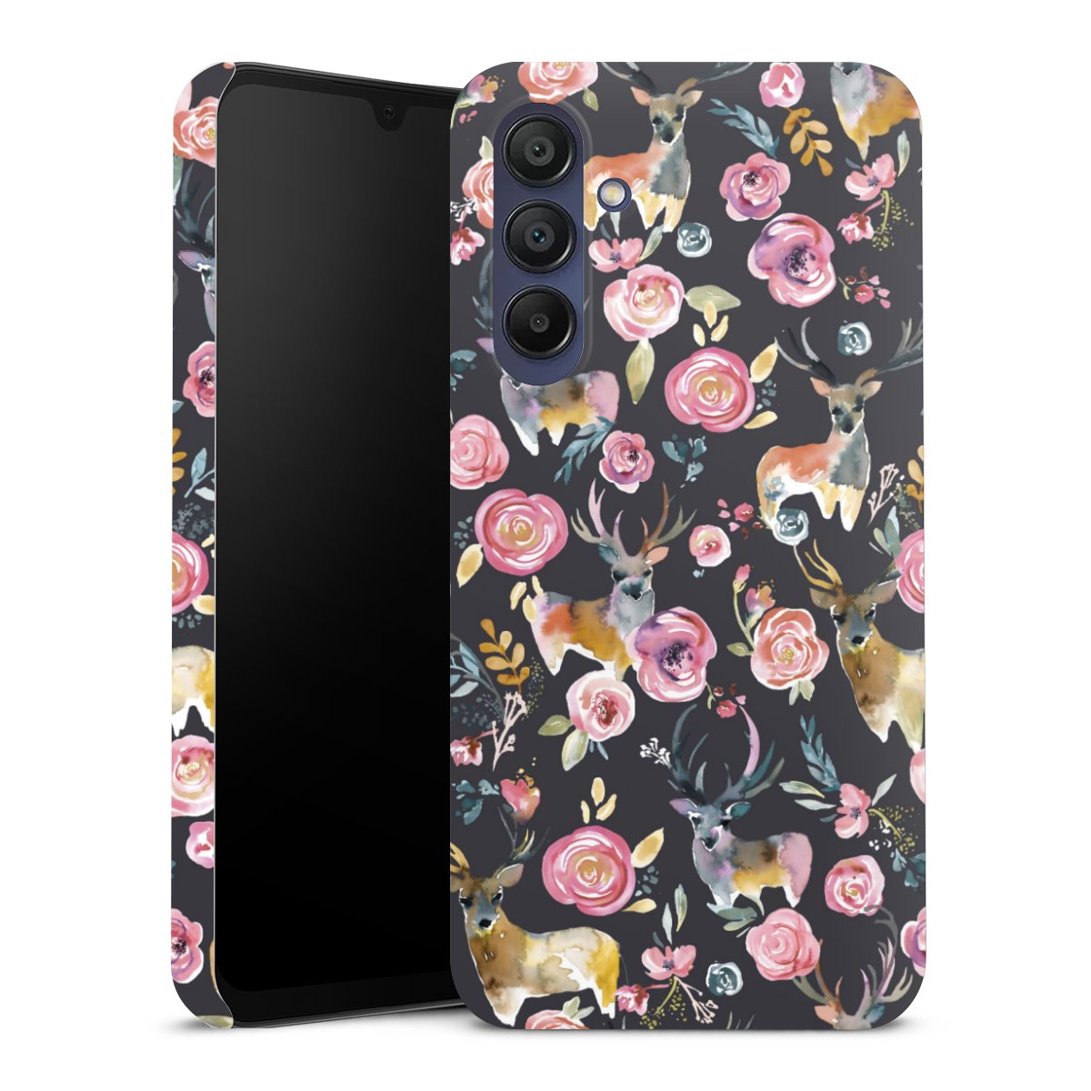 Hirsche und Blumen Anthrazit