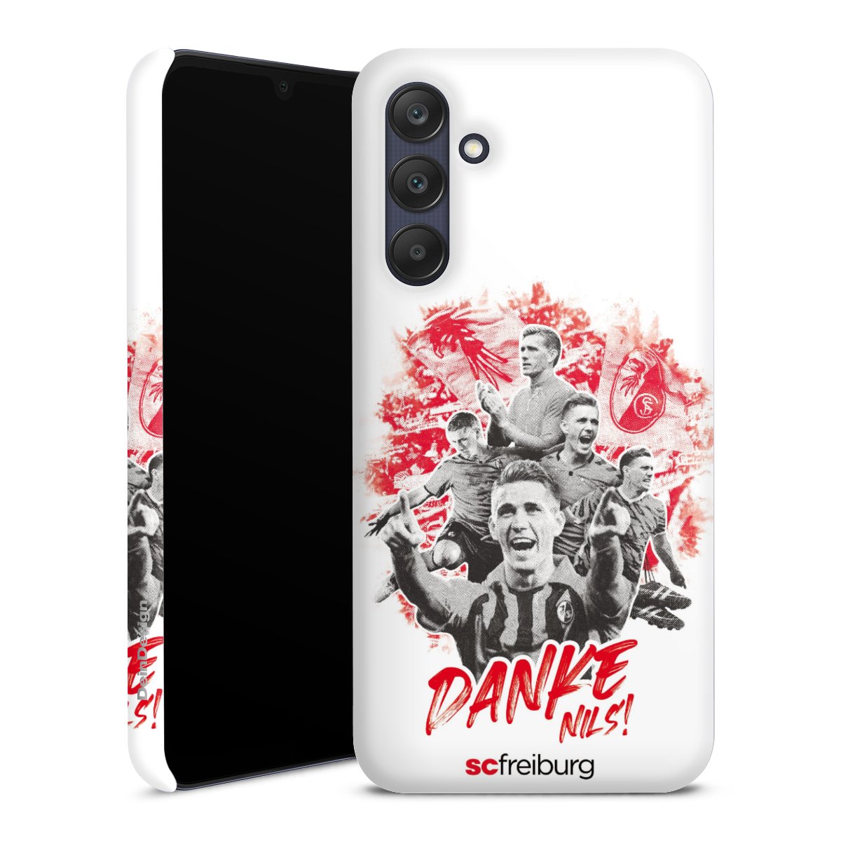Bei DeinDesign kannst Du Dir eine individuelle SC-Freiburg-Handyhülle aussuchen, auf der das stilvolle schwarz-weiße Logo mit dem Greifenkopf zu sehen ist. Durch eine solche Hülle erhält Dein Smartphone ein unverkennbar individuelles Design. Der SC-Freiburg-Shop bietet lizensierte Fanartikel für alle Fans der Breisgau-Brasilianer.