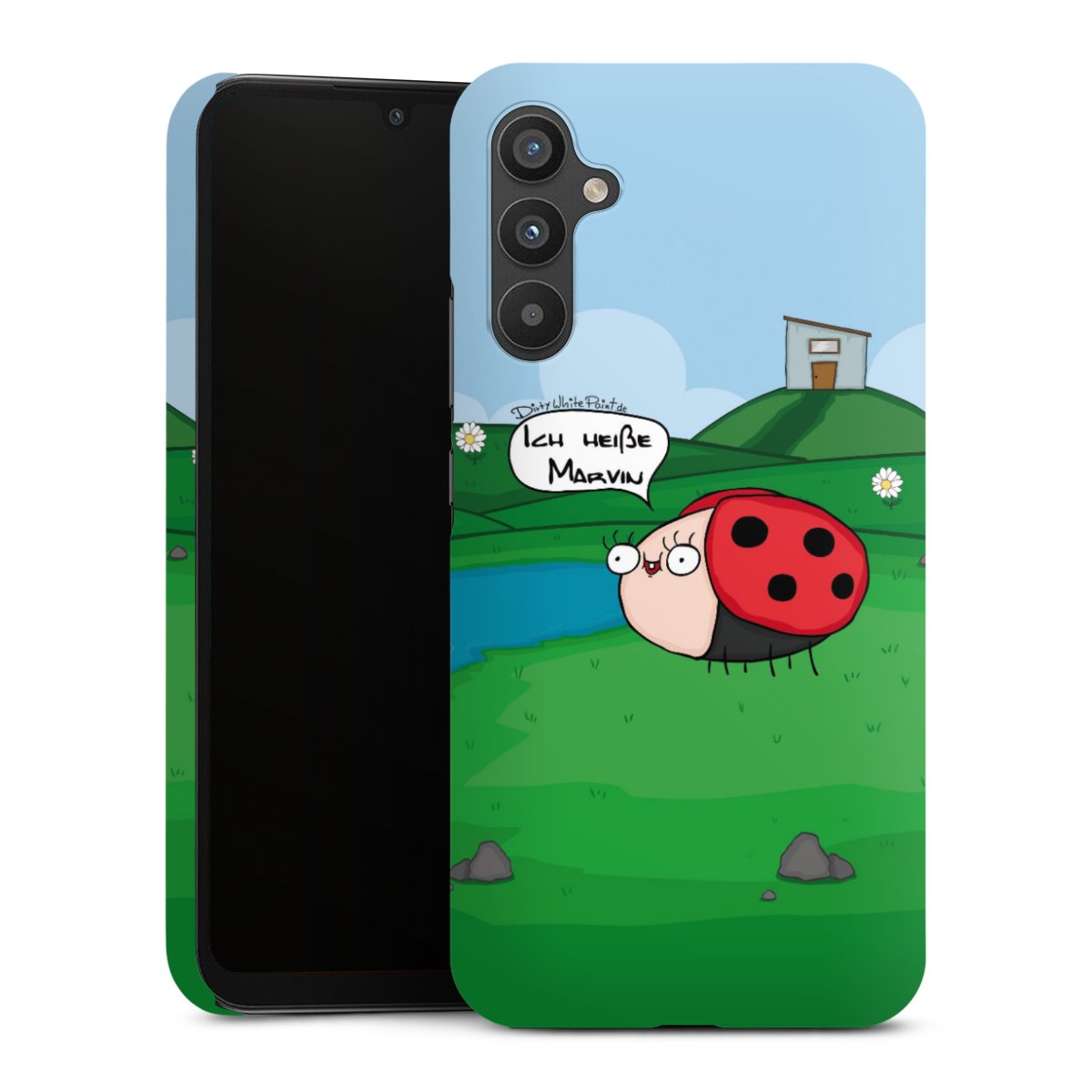 Ob Du Dich nun für Marvin, Günther das Schaf oder doch lieber für die dauerbekiffte Cannabiene entscheidest. Mit einem Motiv von DirtyWhitePaint wird Dein Smartphonen selbst zum Comic.