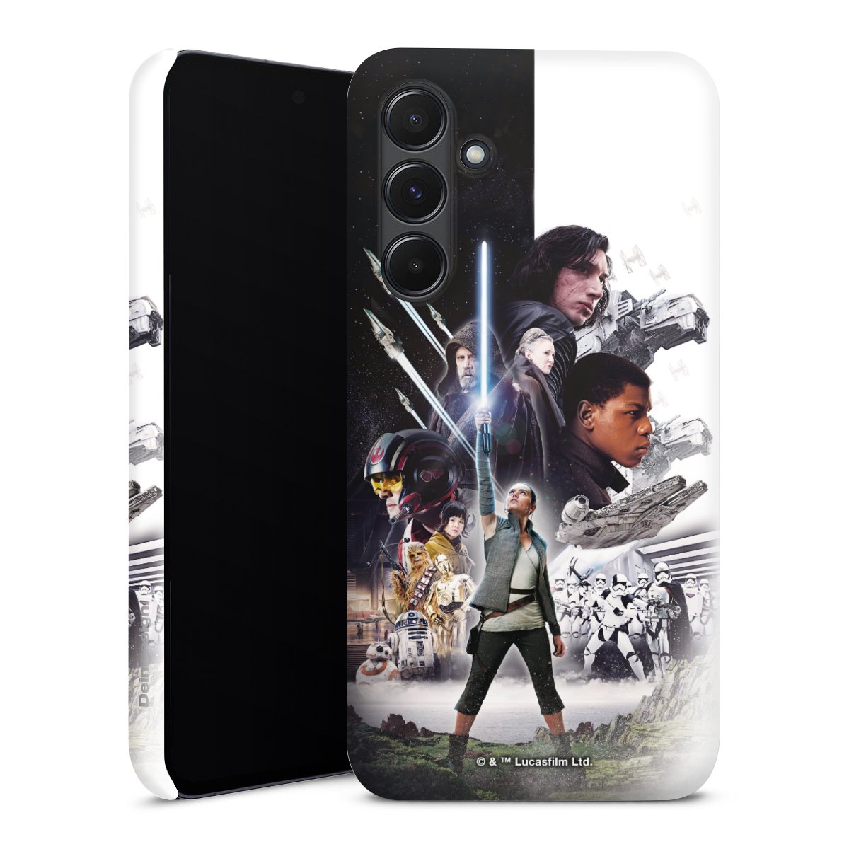 Darth Vader, C3PO, R2D2 und Meister Yoda findest Du in unserem Star Wars Shop auf DeinDesign. Natürlich gibt es auch Star Wars Handyhüllen mit den legendären Charakteren Luke Skywalker, Prinzessin Leia und Han Solo, den Helden der ersten Saga. Wer jedoch die Hauptfiguren der neuen Star Wars Filme ins Herz geschlossen hat, kann auch Finn und Rey mit ihren mächtigen Waffen auf der Rückseite seines Smartphones haben. Die vielseitigen Schutzhüllen in verschiedenen Ausführungen sind das perfekte Geschenk für alle Star Wars Fans, die ihrem Smartphone eine individuelle Note verleihen wollen.