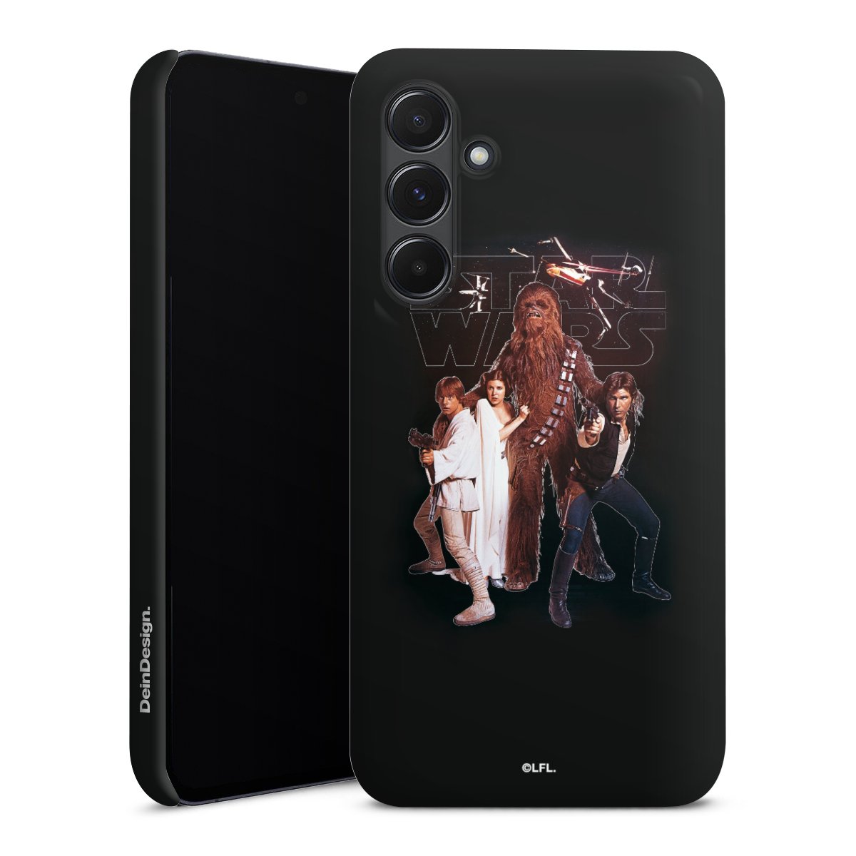 Darth Vader, C3PO, R2D2 und Meister Yoda findest Du in unserem Star Wars Shop auf DeinDesign. Natürlich gibt es auch Star Wars Handyhüllen mit den legendären Charakteren Luke Skywalker, Prinzessin Leia und Han Solo, den Helden der ersten Saga. Wer jedoch die Hauptfiguren der neuen Star Wars Filme ins Herz geschlossen hat, kann auch Finn und Rey mit ihren mächtigen Waffen auf der Rückseite seines Smartphones haben. Die vielseitigen Schutzhüllen in verschiedenen Ausführungen sind das perfekte Geschenk für alle Star Wars Fans, die ihrem Smartphone eine individuelle Note verleihen wollen.