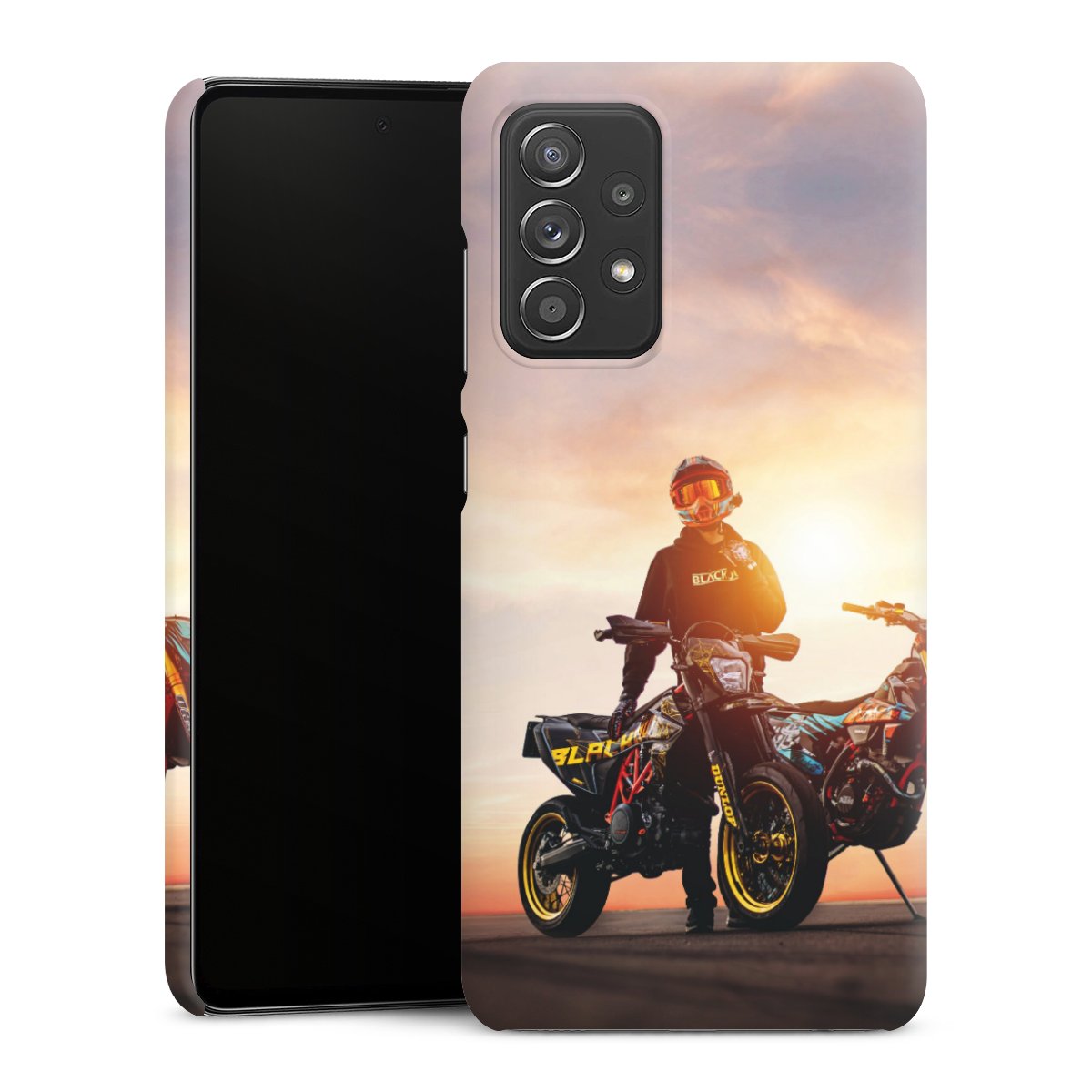 Bei dieser Handyhülle nutzen wird den besonders langlebigen Sublimationsdruck. Dieses raffinierte Druckverfahren sticht durch sein hochwertiges, gestochen scharfes Druckbild in brillanten Farben hervor. Der Druckbereich umfasst die ganze Hartschale inklusive der Ecken und Kanten. Wähle für Dein Design entweder eines unserer exklusiven Shop-Motive, oder werde kreativ und gestalte Dein Wunschdesign zum Beispiel mit Fotos und Overlays selbst.