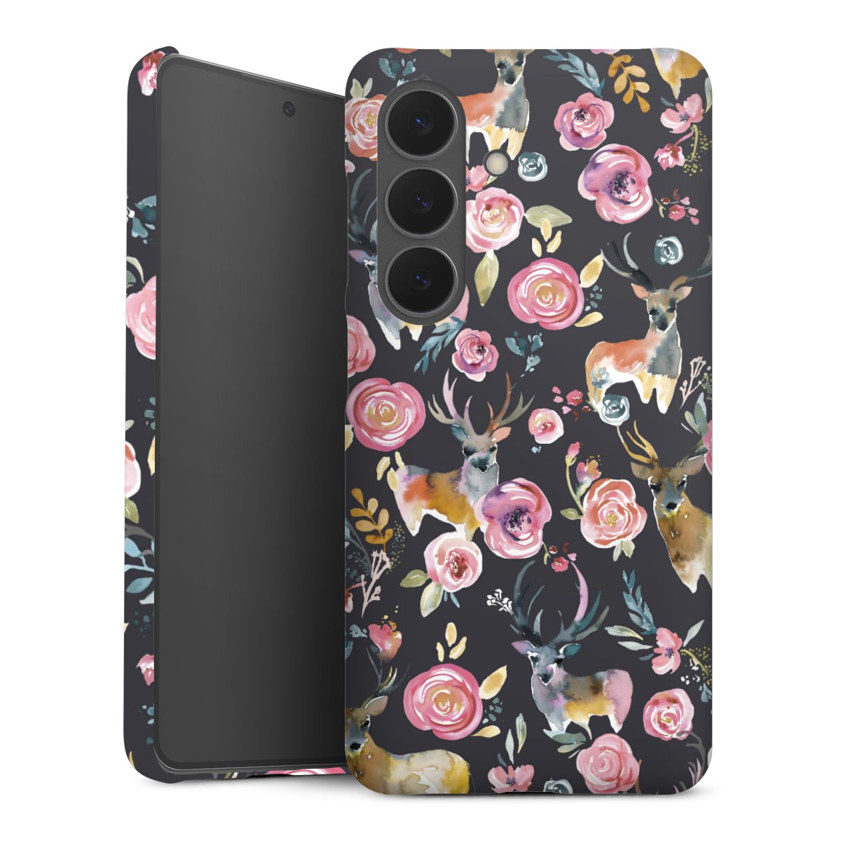 Hirsche und Blumen Anthrazit