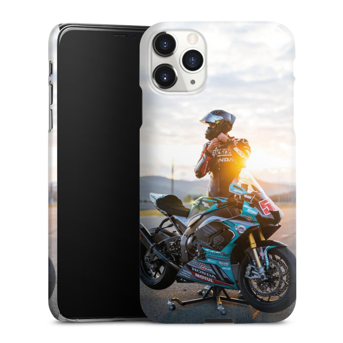 Die Premium-Hülle besteht aus hochwertigem PC (Polycarbonat). Das widerstandsfähige und langlebige Material macht die Hülle stabil und bruchsicher. Die Oberfläche fühlt sich angenehm glatt an und macht das Premium Case zu einem echten Handschmeichler. Die Handyhülle ist in glänzend und matt erhältlich.