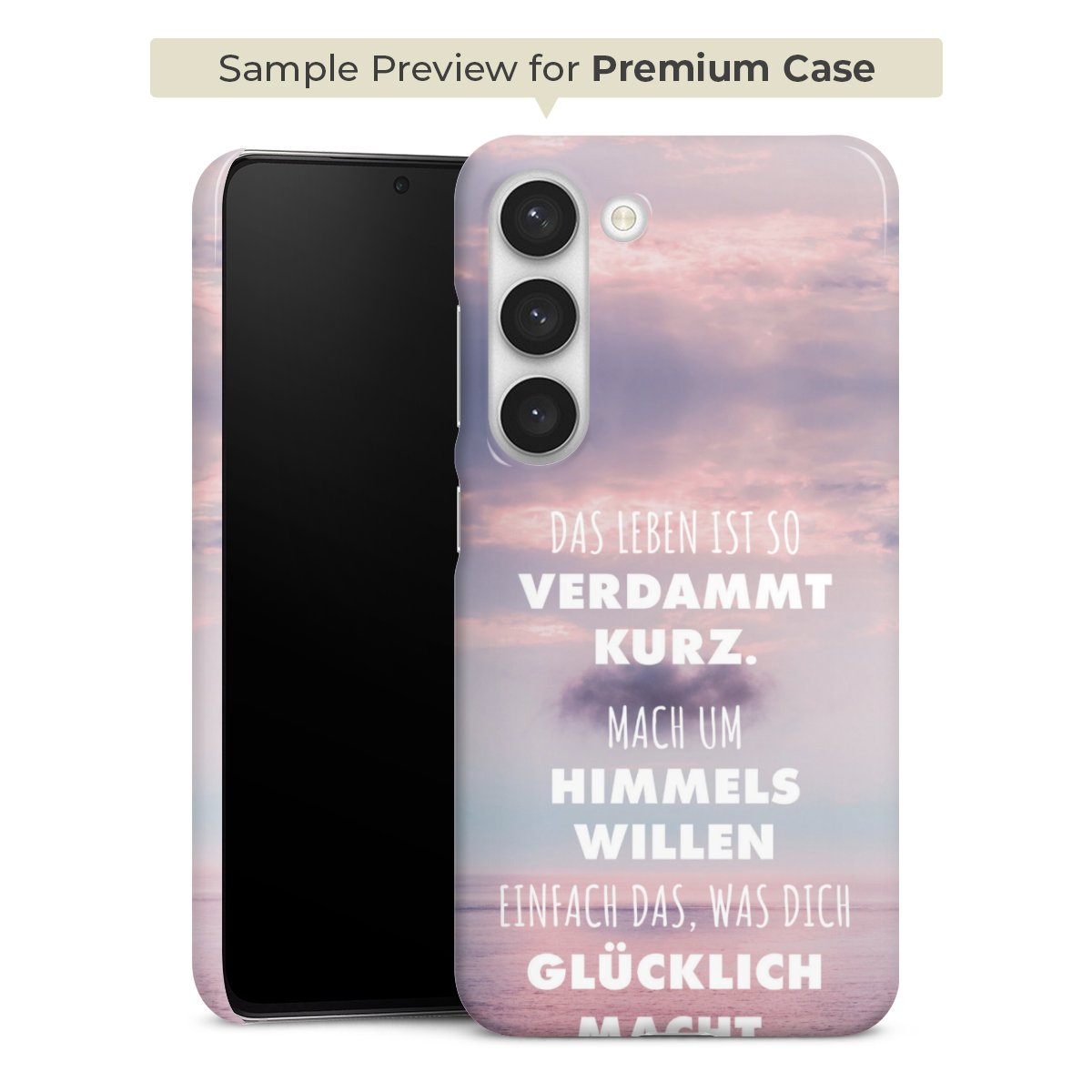 Die Premium-Hülle besteht aus hochwertigem PC (Polycarbonat). Das widerstandsfähige und langlebige Material macht die Hülle stabil und bruchsicher. Die Oberfläche fühlt sich angenehm glatt an und macht das Premium Case zu einem echten Handschmeichler. Die Handyhülle ist in glänzend und matt erhältlich.