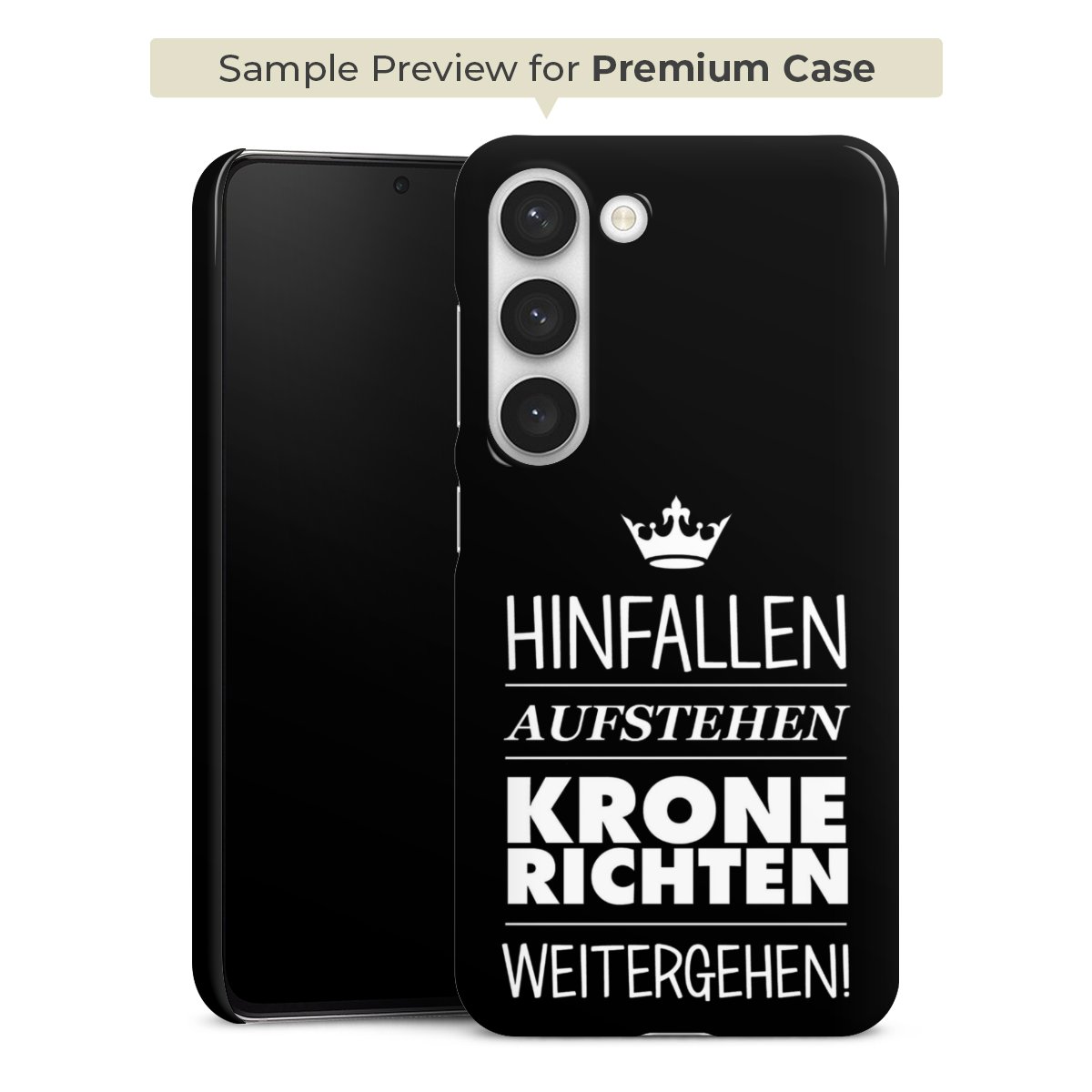 Die Premium-Hülle besteht aus hochwertigem PC (Polycarbonat). Das widerstandsfähige und langlebige Material macht die Hülle stabil und bruchsicher. Die Oberfläche fühlt sich angenehm glatt an und macht das Premium Case zu einem echten Handschmeichler. Die Handyhülle ist in glänzend und matt erhältlich.