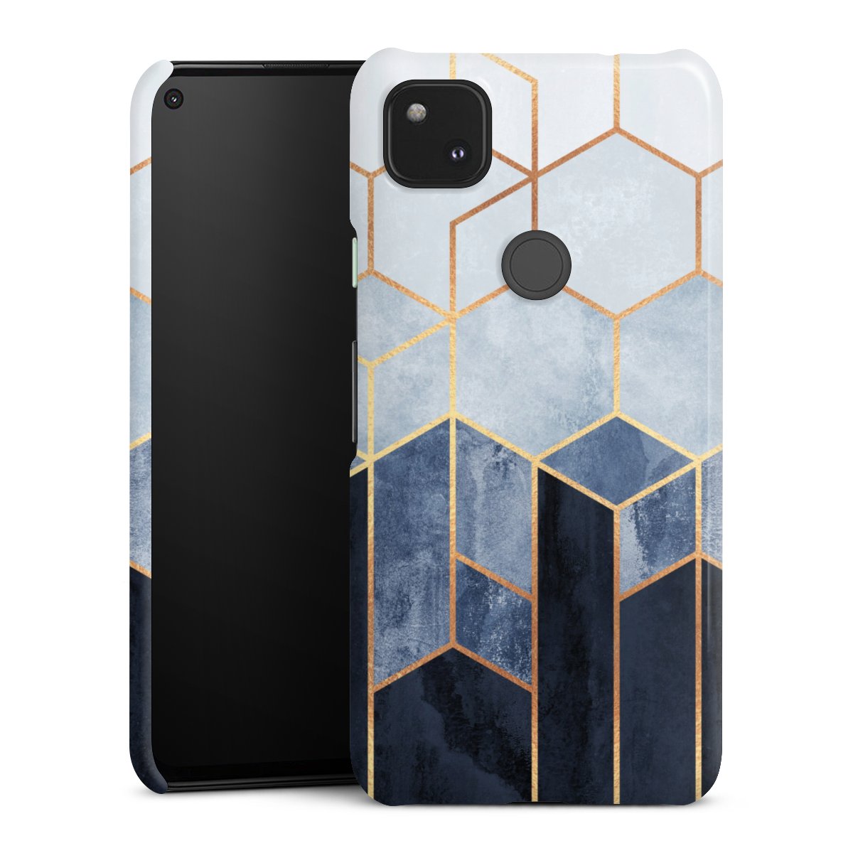 Blauer Farbverlauf Sechsecke Golddruck