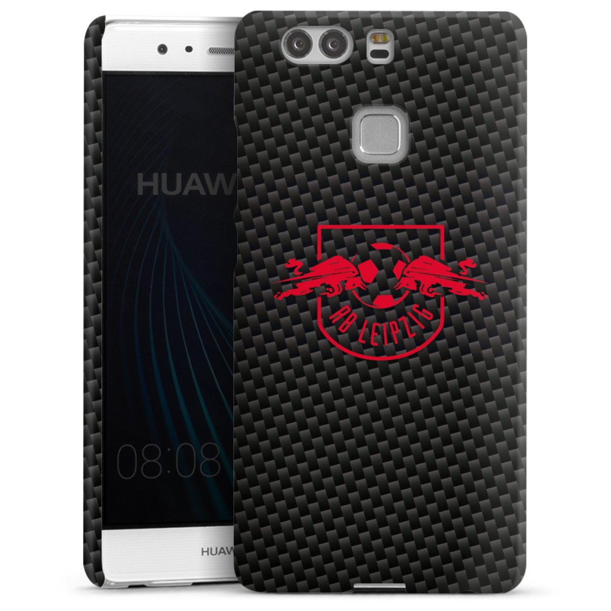 Rotes RB Leipzig Logo auf Carbonoptik