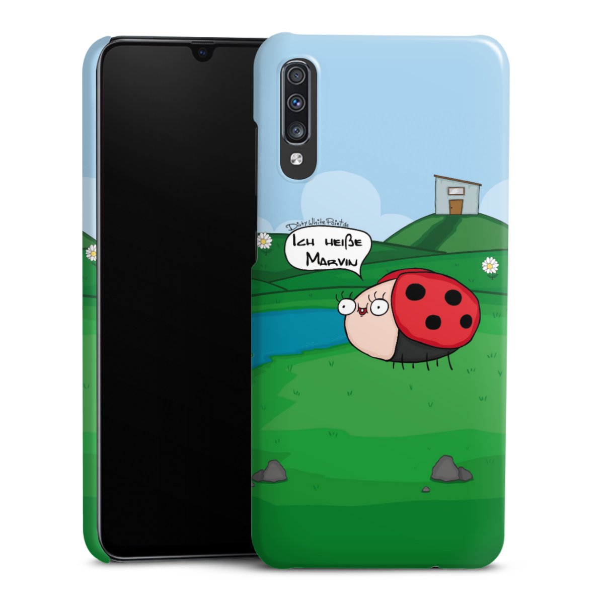 Ob Du Dich nun für Marvin, Günther das Schaf oder doch lieber für die dauerbekiffte Cannabiene entscheidest. Mit einem Motiv von DirtyWhitePaint wird Dein Smartphonen selbst zum Comic.