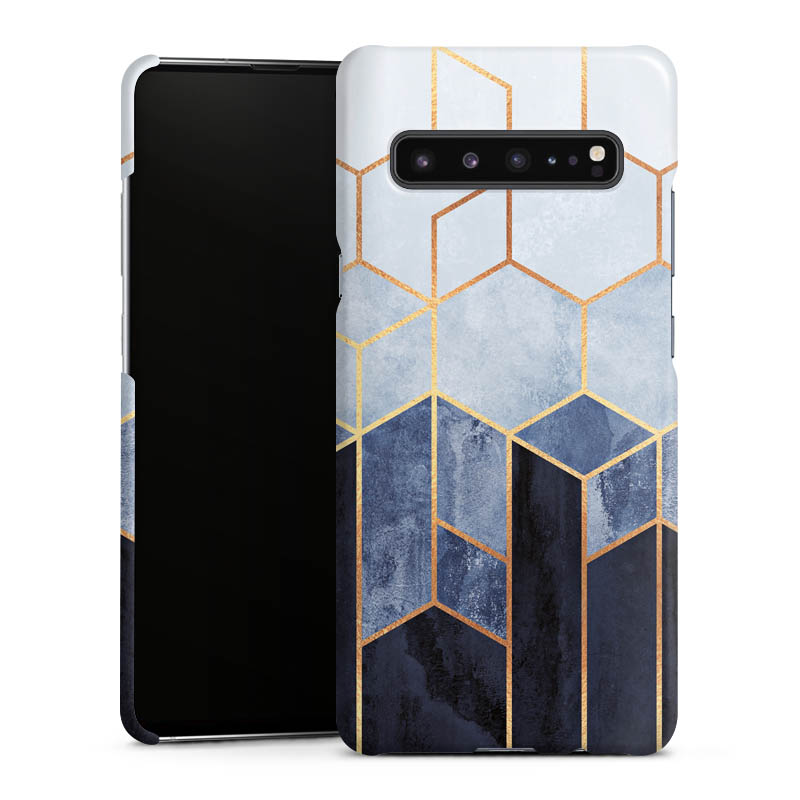 Blauer Farbverlauf Sechsecke Golddruck