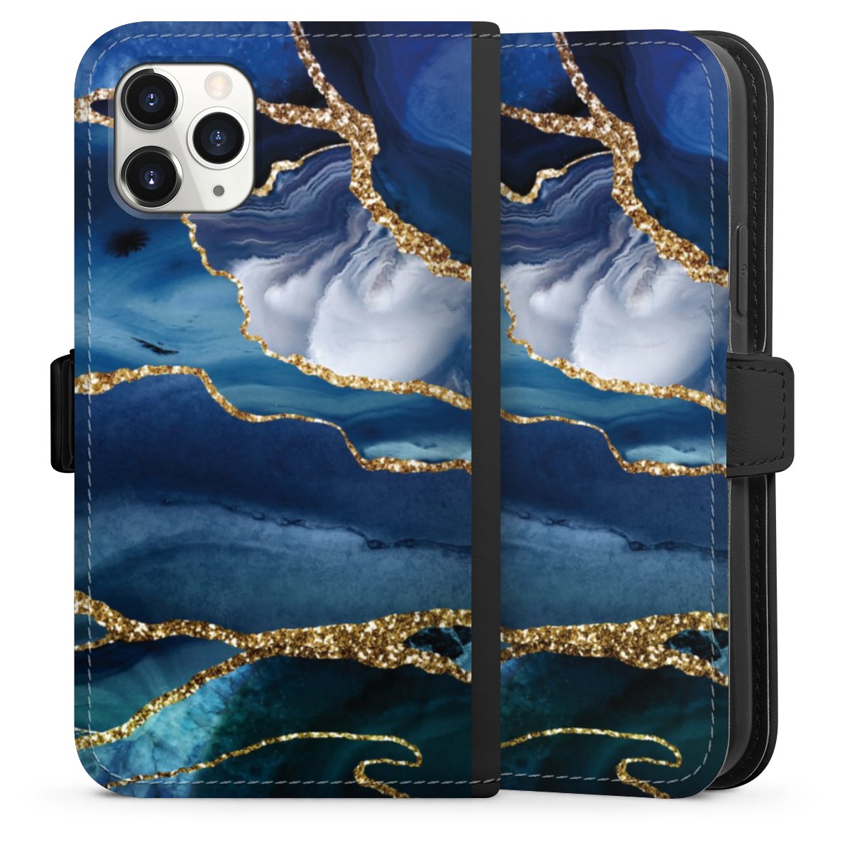 Blauer Marmor Gold Glitzer Look