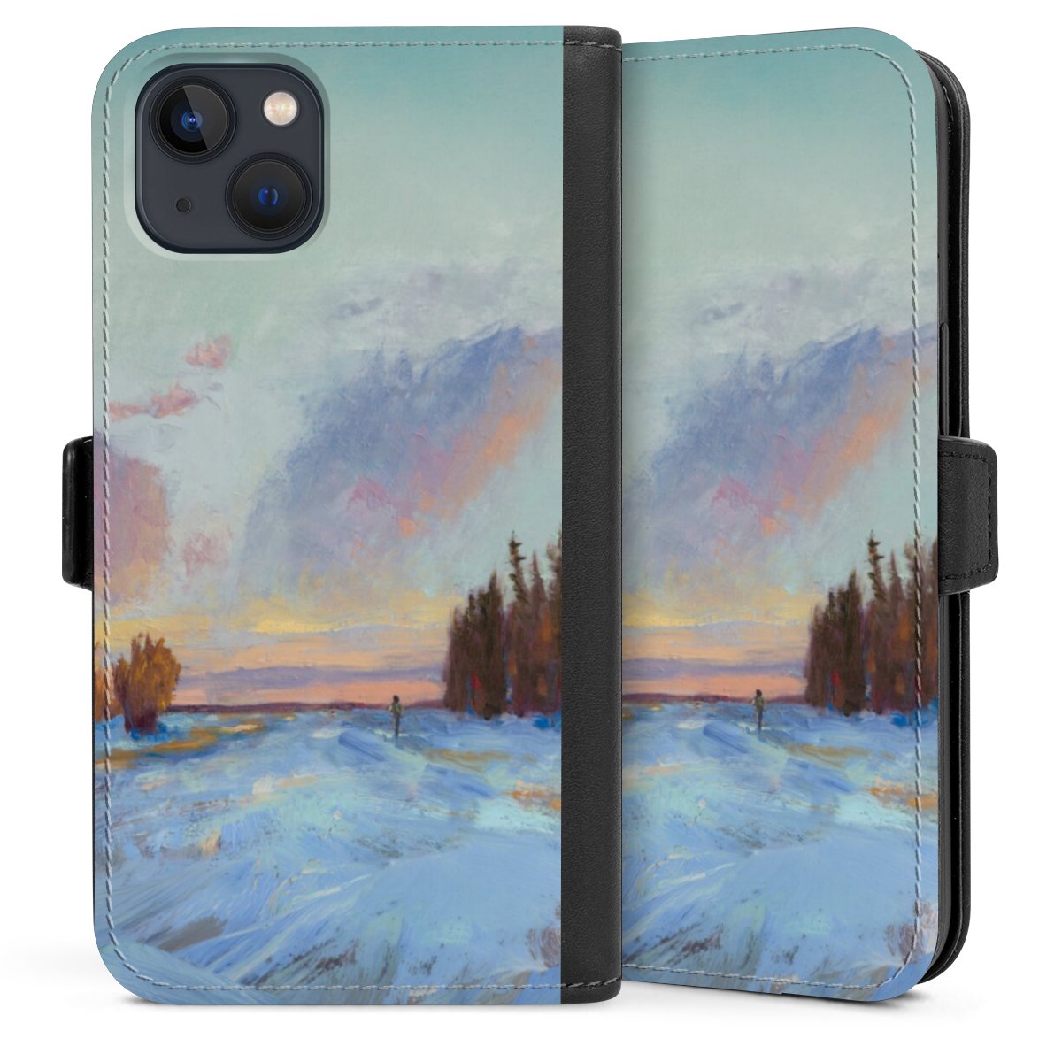 Bei dieser Handyhülle nutzen wir das solide Direktdruck-Verfahren. Der Druckbereich umfasst die Vorder- und Rückseite, die Innenseiten bleiben unbedruckt. Die Handyhülle kann sowohl unbedruckt, als auch vollflächig oder partiell bedruckt bestellt werden. Beachte hierbei, dass der Druck wie in der Ansicht dargestellt auf dem Rücken unterbrochen ist, damit Dein Druckbild durch das Klappen der Tasche nicht brüchig wird. Der Vorteil bei diesem Produkt: aufgrund der seitlich angebrachten Lasche wird kein Teil des Druckbildes verdeckt.